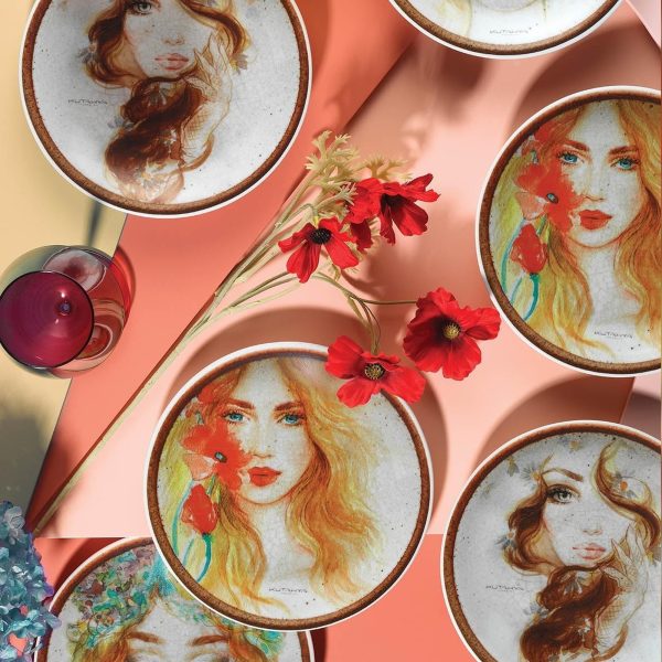Set de Platos de Postre (6 Piezas) porcelana caras de mujer 21x21x2cm