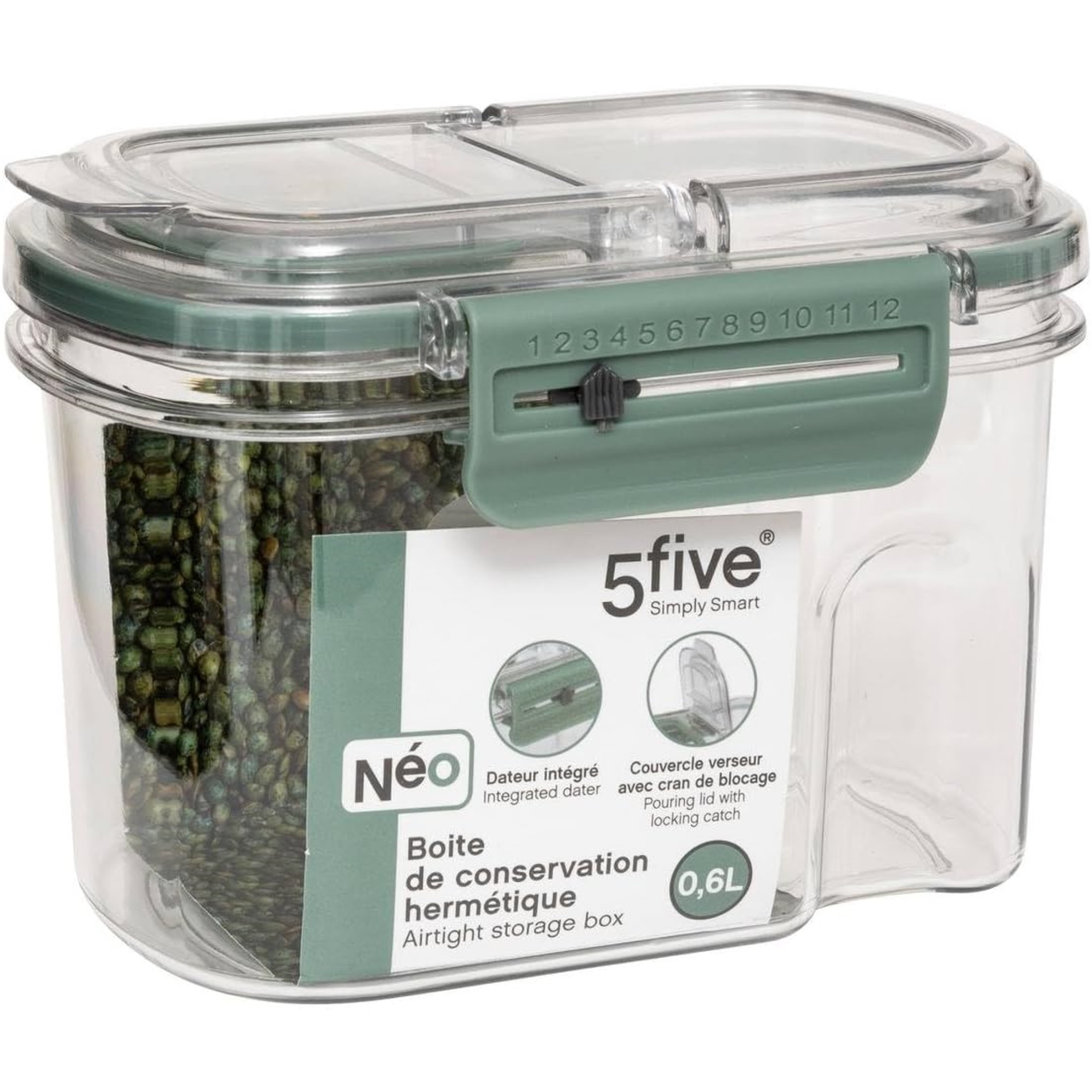 Caja rectangular doble vertedero Neo de 0,6 litros, color transparente.