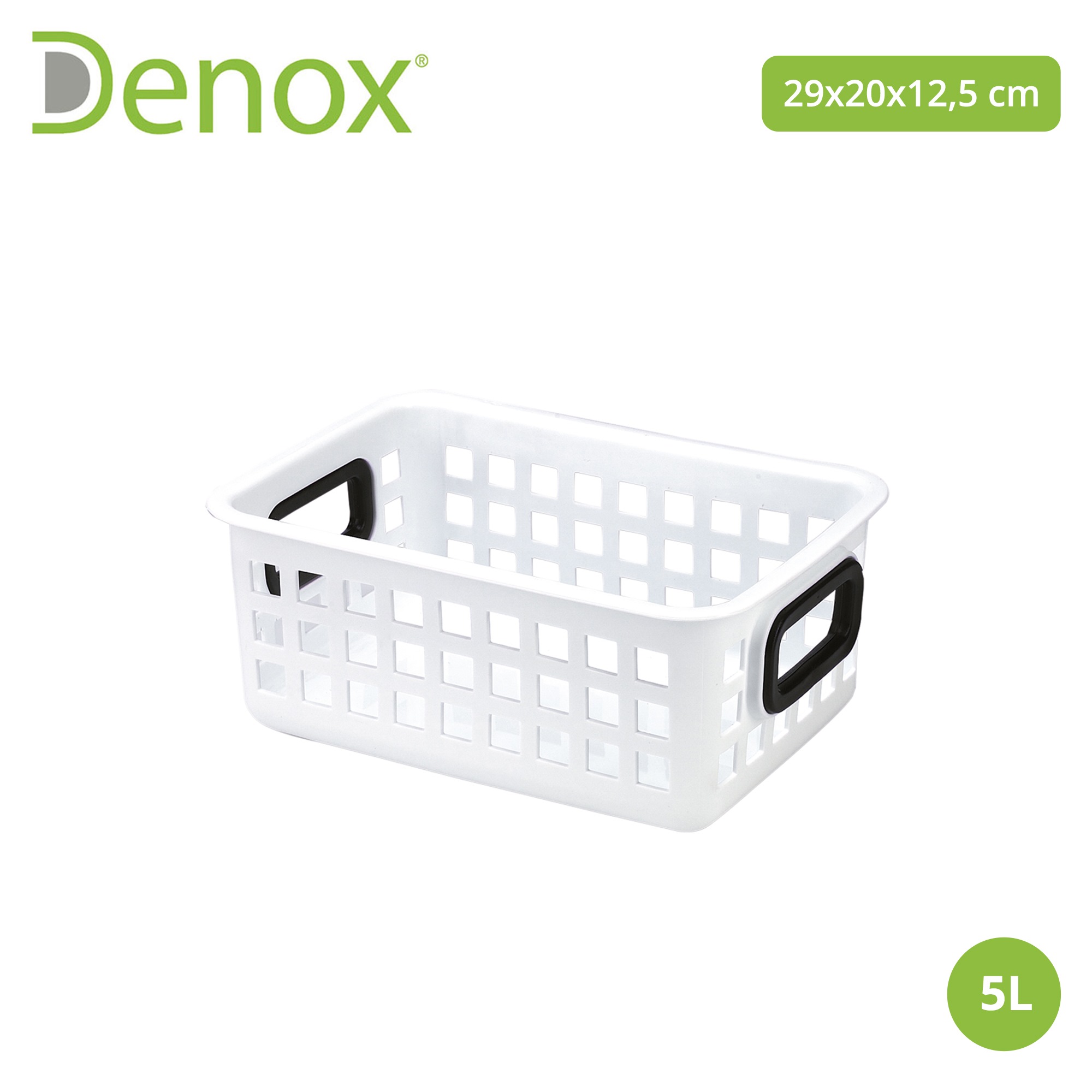 Cesta Europa Denox de plástico blanco. Con dimensiones de 29 X 20 X 12,5 cm y una capacidad de 5 L.