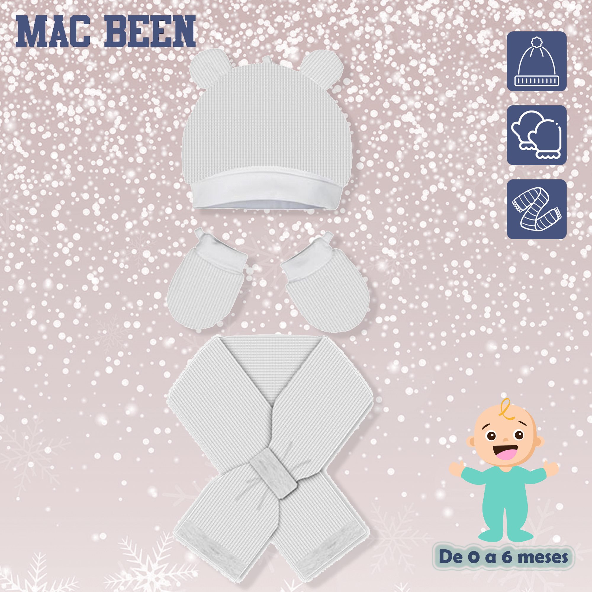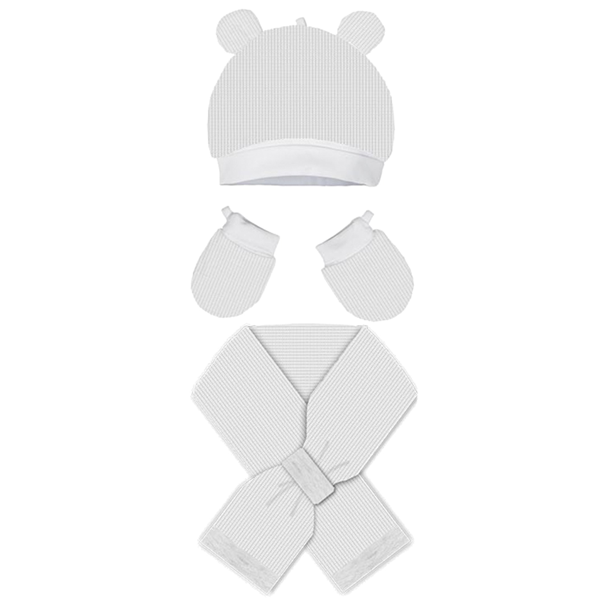 CONJUNTO DE GUANTES, GORRO Y BUFANDA PARA RECIÉN NACIDOS DE 0 A 6 MESES COLOR BLANCO