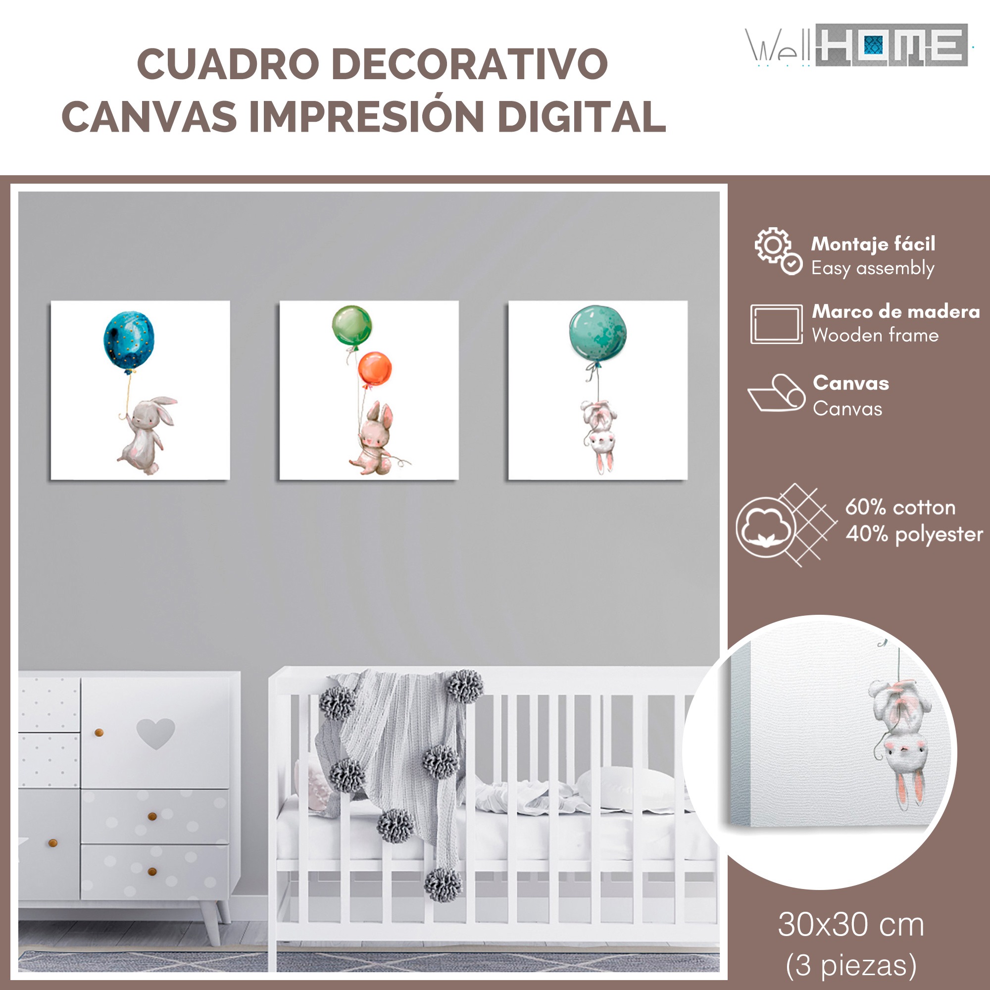 Cuadro decorativo canvas de impresión digital 3 piezas. WELL HOME
