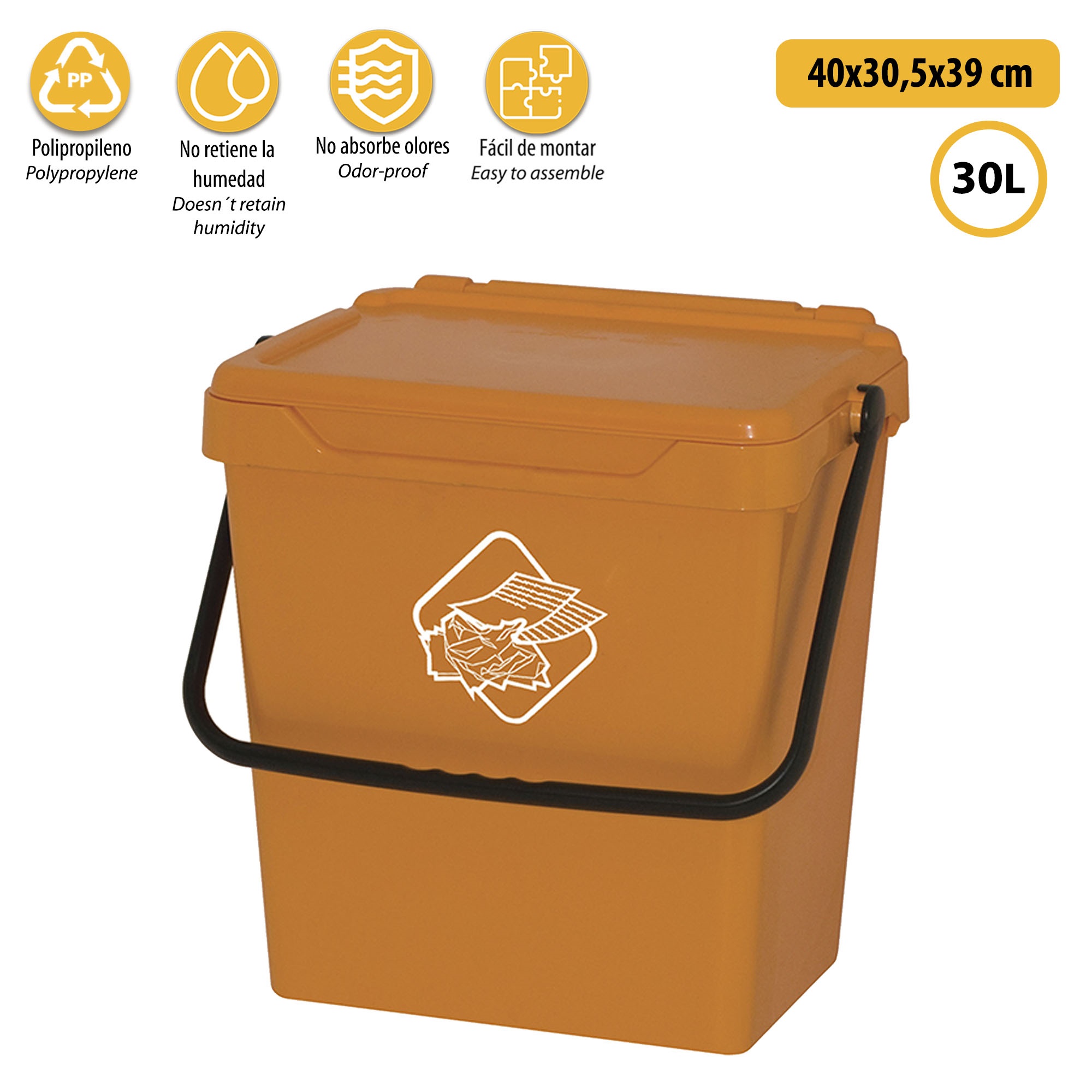 Cubo de polipropileno con la manija y la cubierta, de color amarillo, 30 Lt. 400x305x390 mm