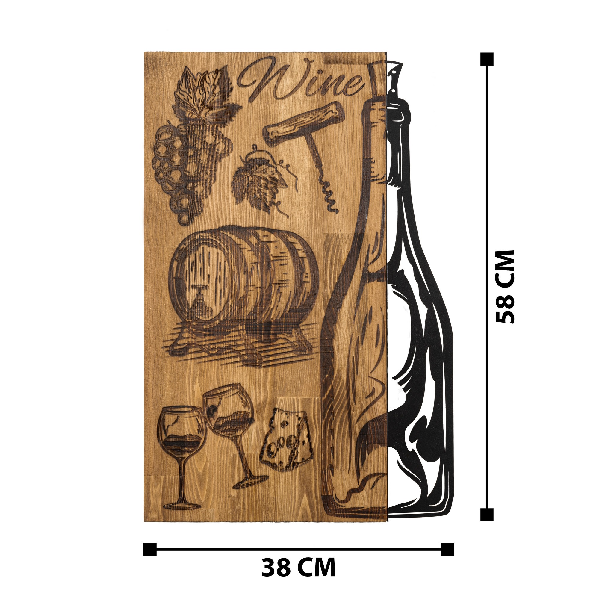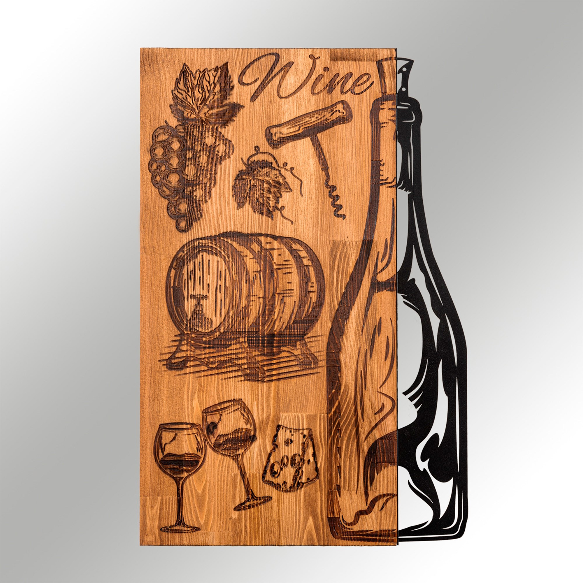 Por su diseño de botella de vino y complementos, quedará genial tanto en una cocina como en una bodega.