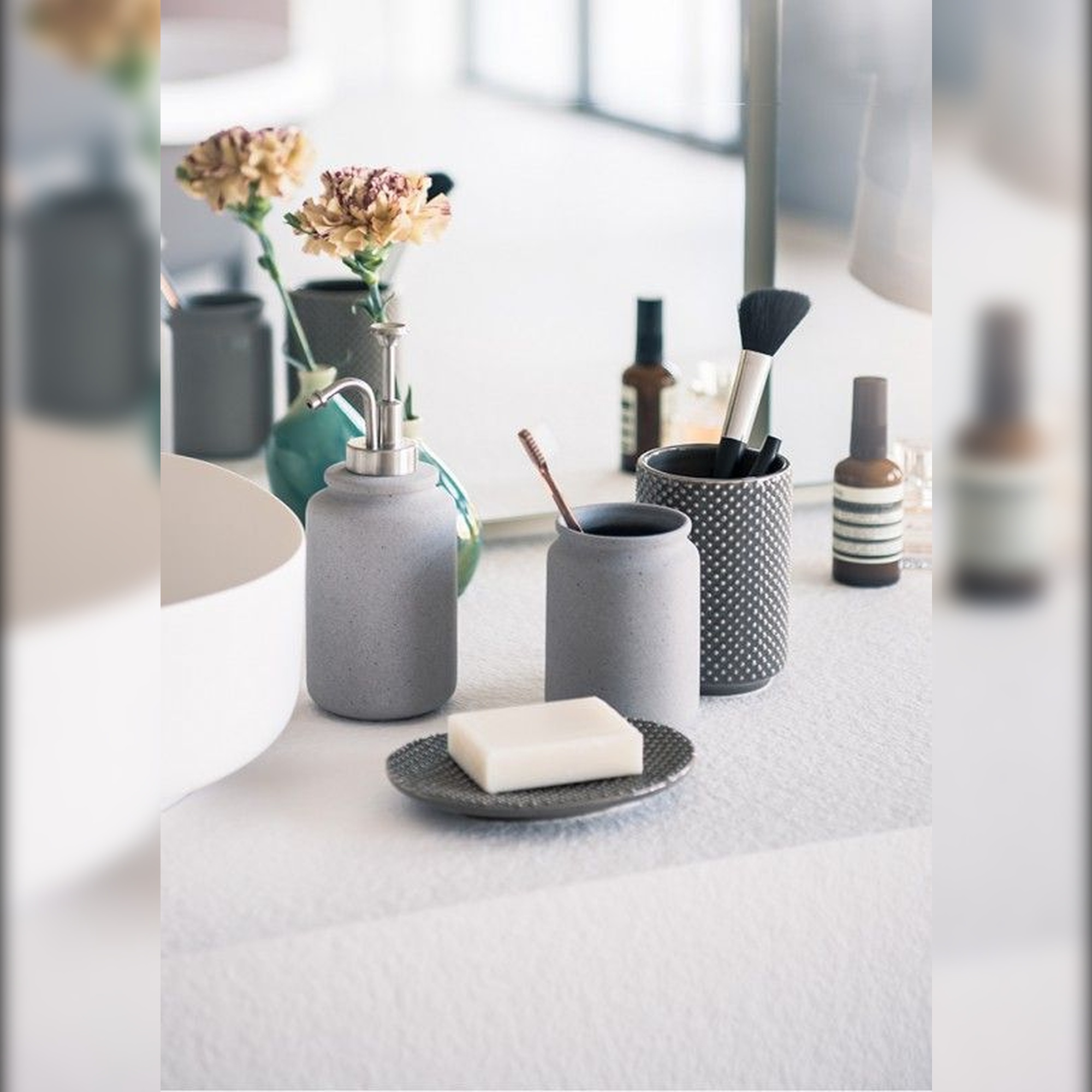 Dispensador de jabon Spirella «Cement» de ceramica en color gris Ø8 x19,5 cm