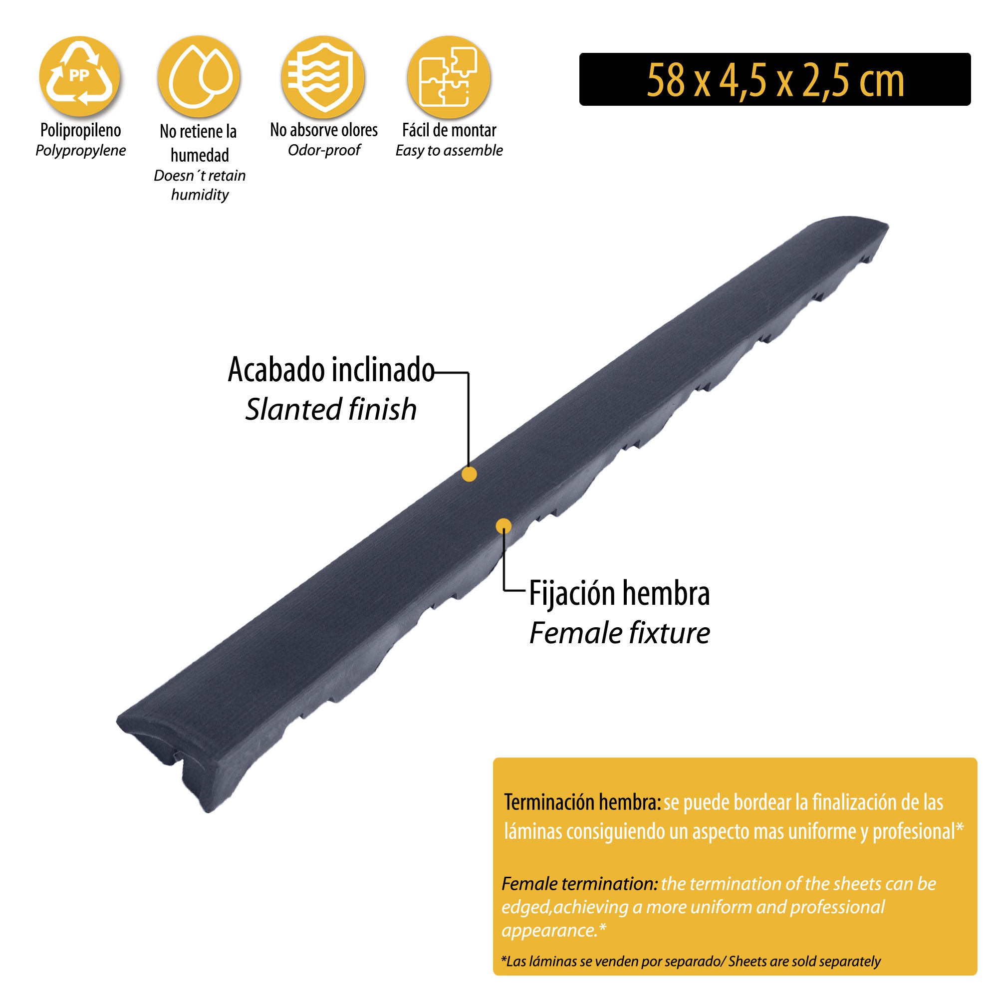Borde para las superficies STRIPED: Loseta inclinada en color gris en polipropileno