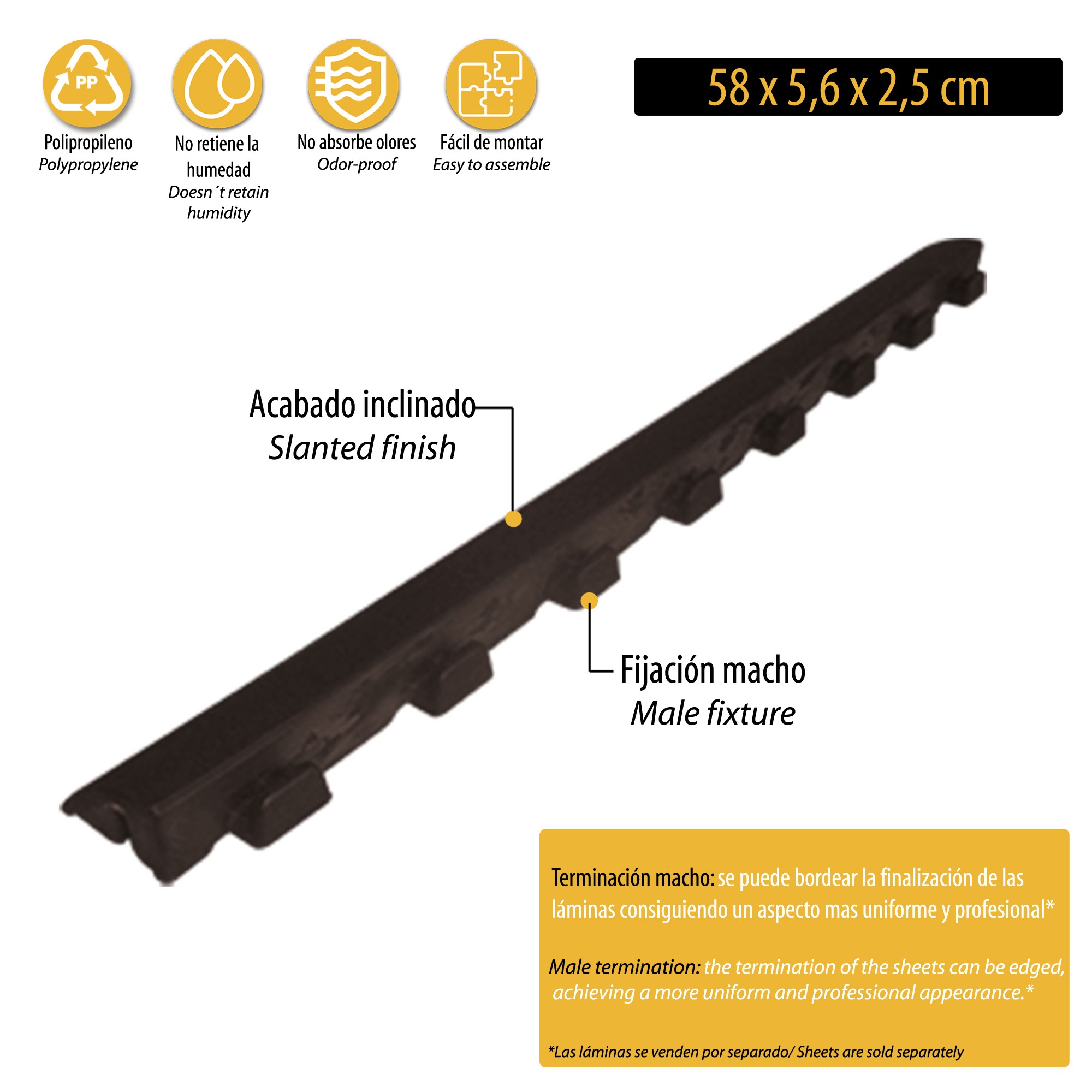 Borde para las superficies WOODENLIKE: Loseta inclinada en color marrón, en polipropileno