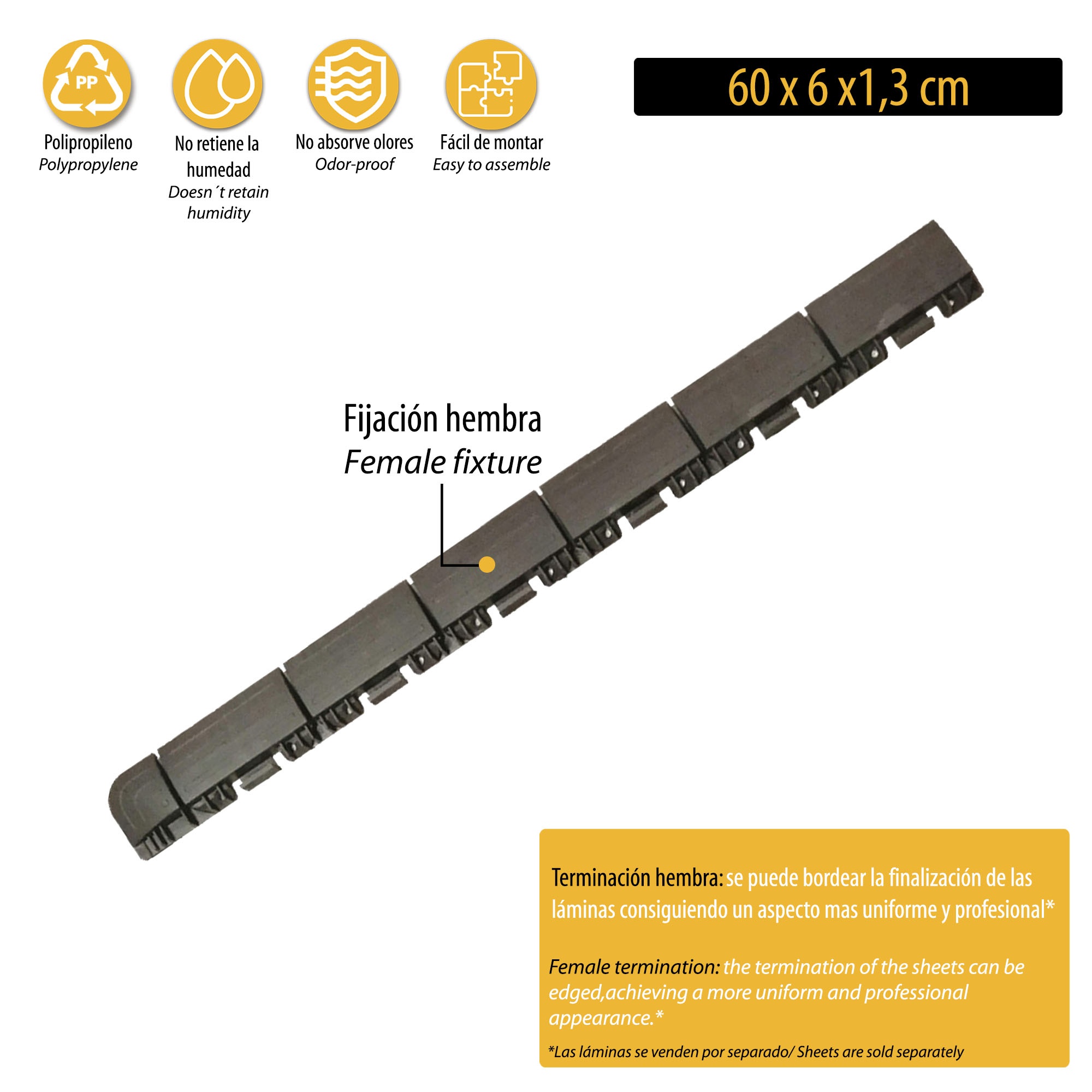 Finalización Suelo MARTE Gris, 60x6x1,3 cm; Acabado Hembra – Colección Marte – Efecto Cruzado