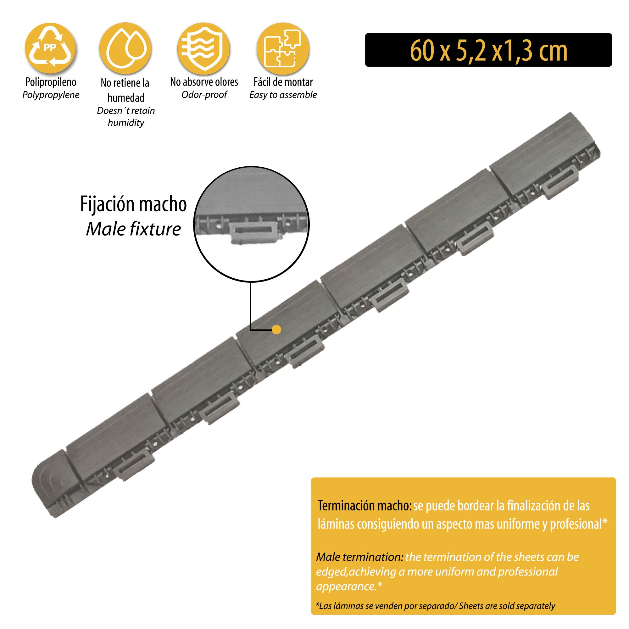 Finalización Suelo MARTE Gris Claro, 60×5,2×1,3 cm; Acabado Macho – Colección Marte – Efecto Drenaje