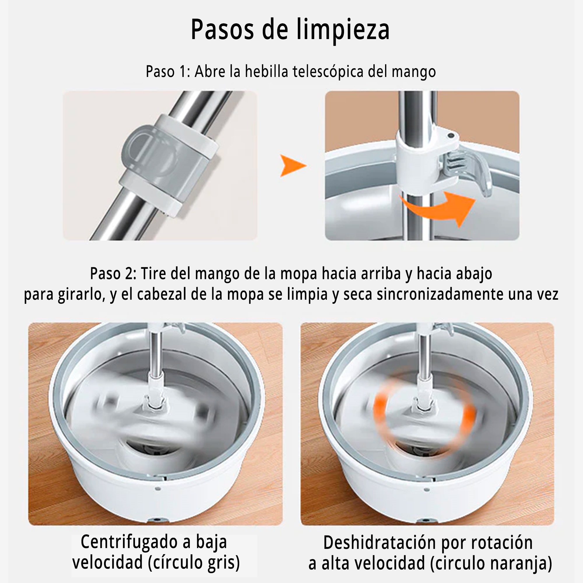 Cubo de limpieza eficiente dos en uno: el cubo de la fregona tiene un sistema giratorio y el proceso de limpieza se puede completar abriendo el pestillo y tirando del mango hacia arriba y hacia abajo.