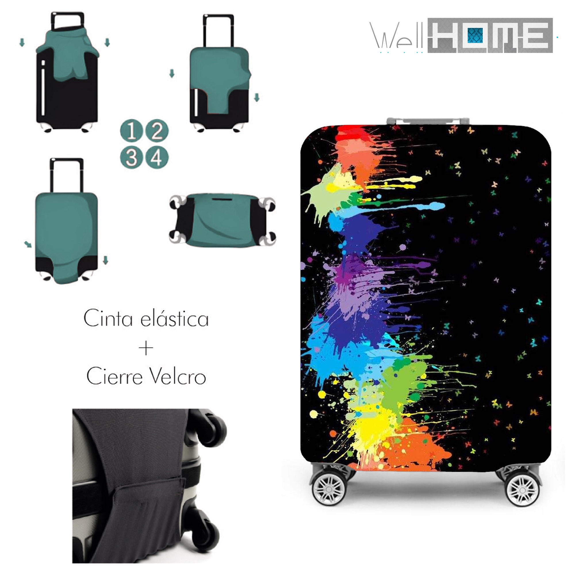 Protege tu equipaje cun una divertida funda que personaliza tu maleta y hazla identificable.