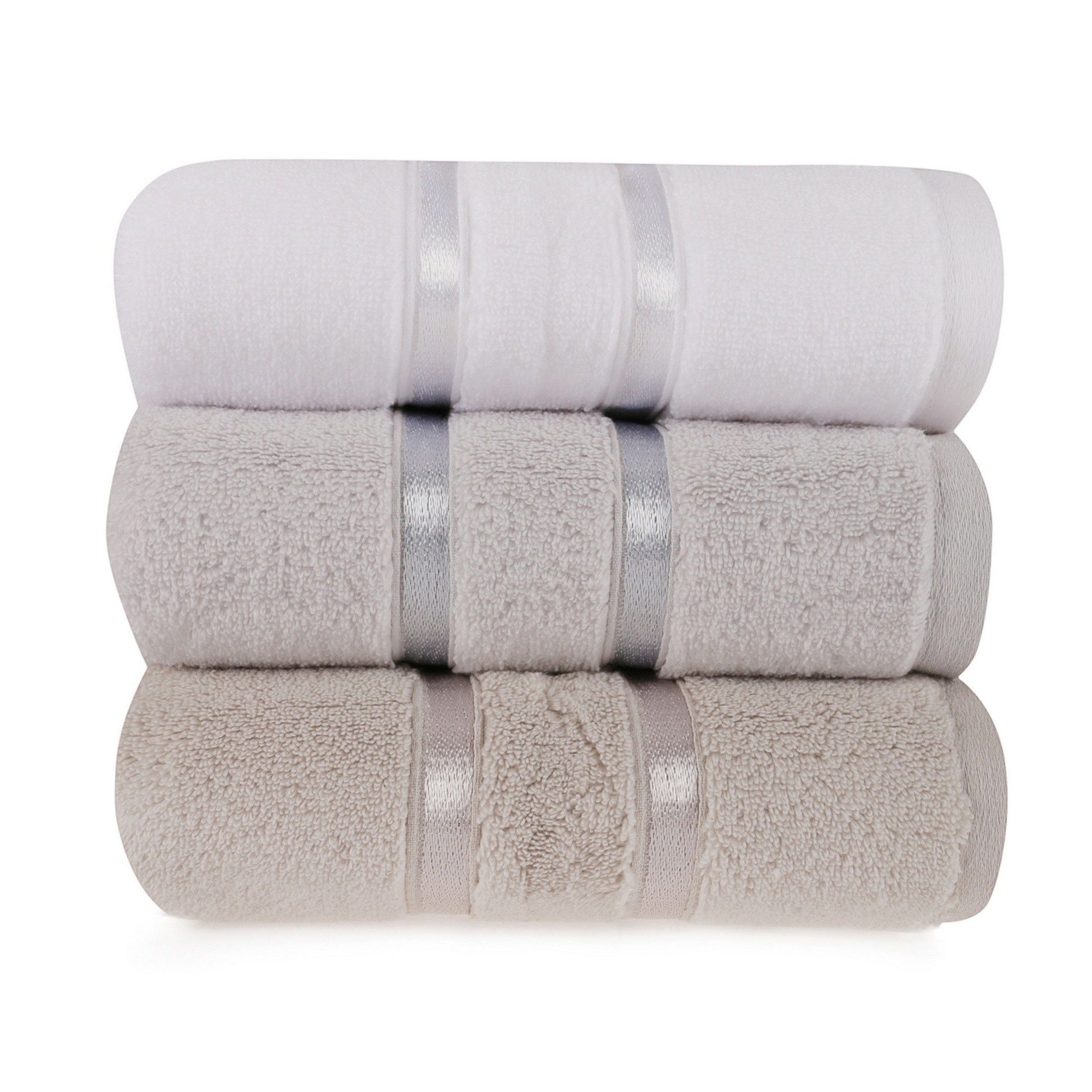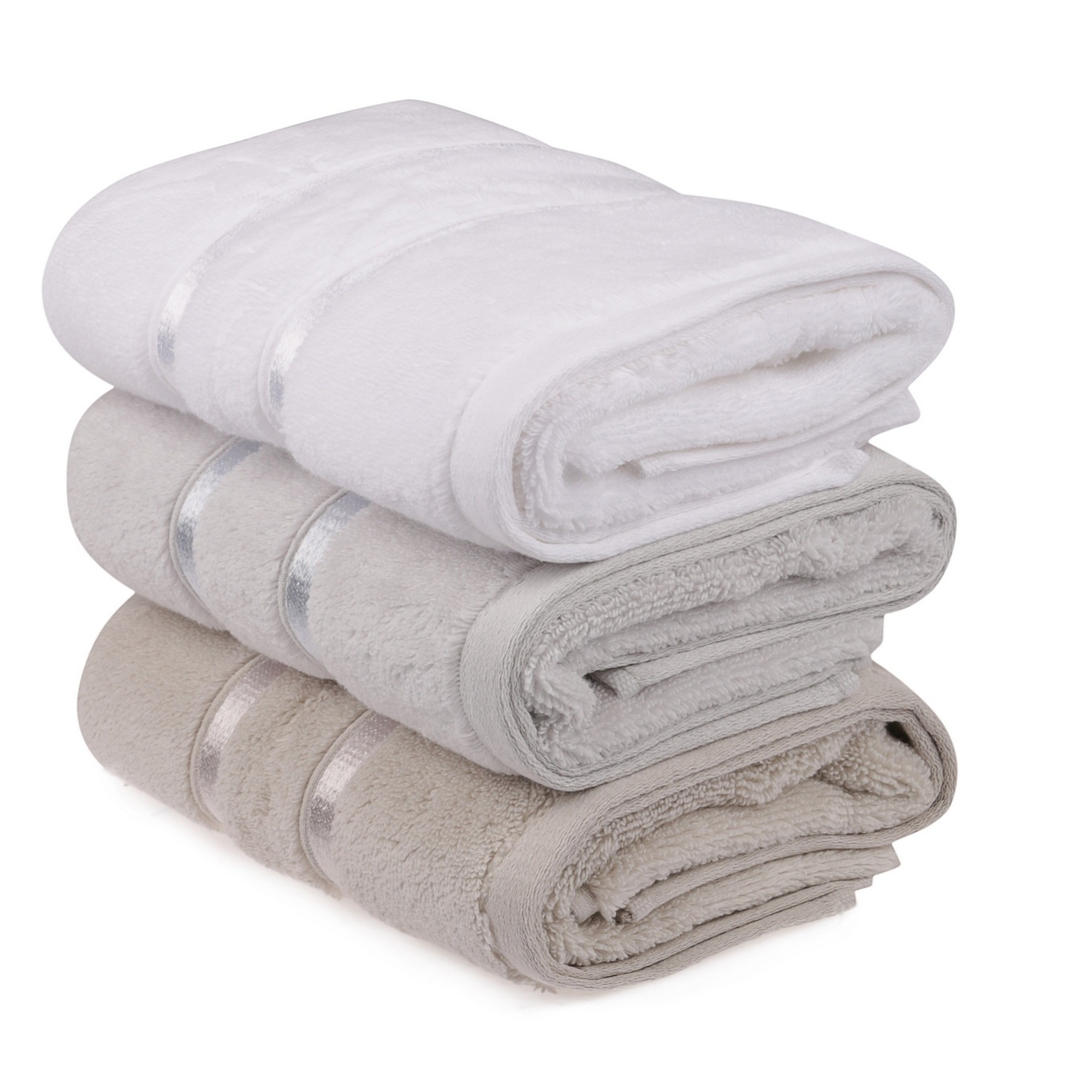 Juego de toallas de mano (3 piezas) blanco, azul claro, marrón claro