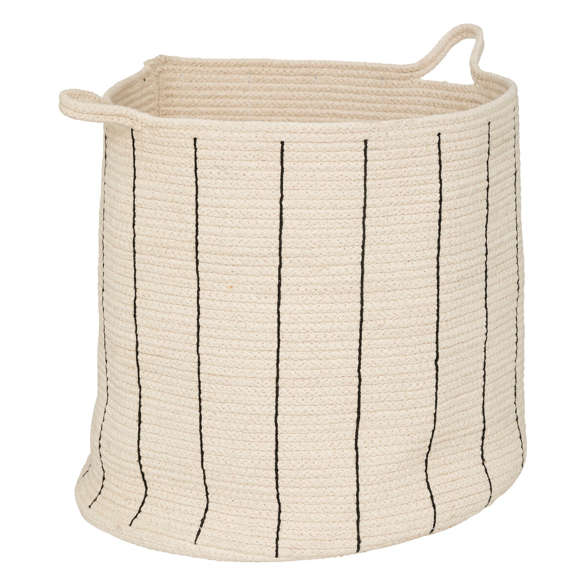 Finamente rayados y equipados con asas, estos 2 cestos nómadas combinarán a la perfección con materiales cálidos como la madera para formar un conjunto armonioso y actual.