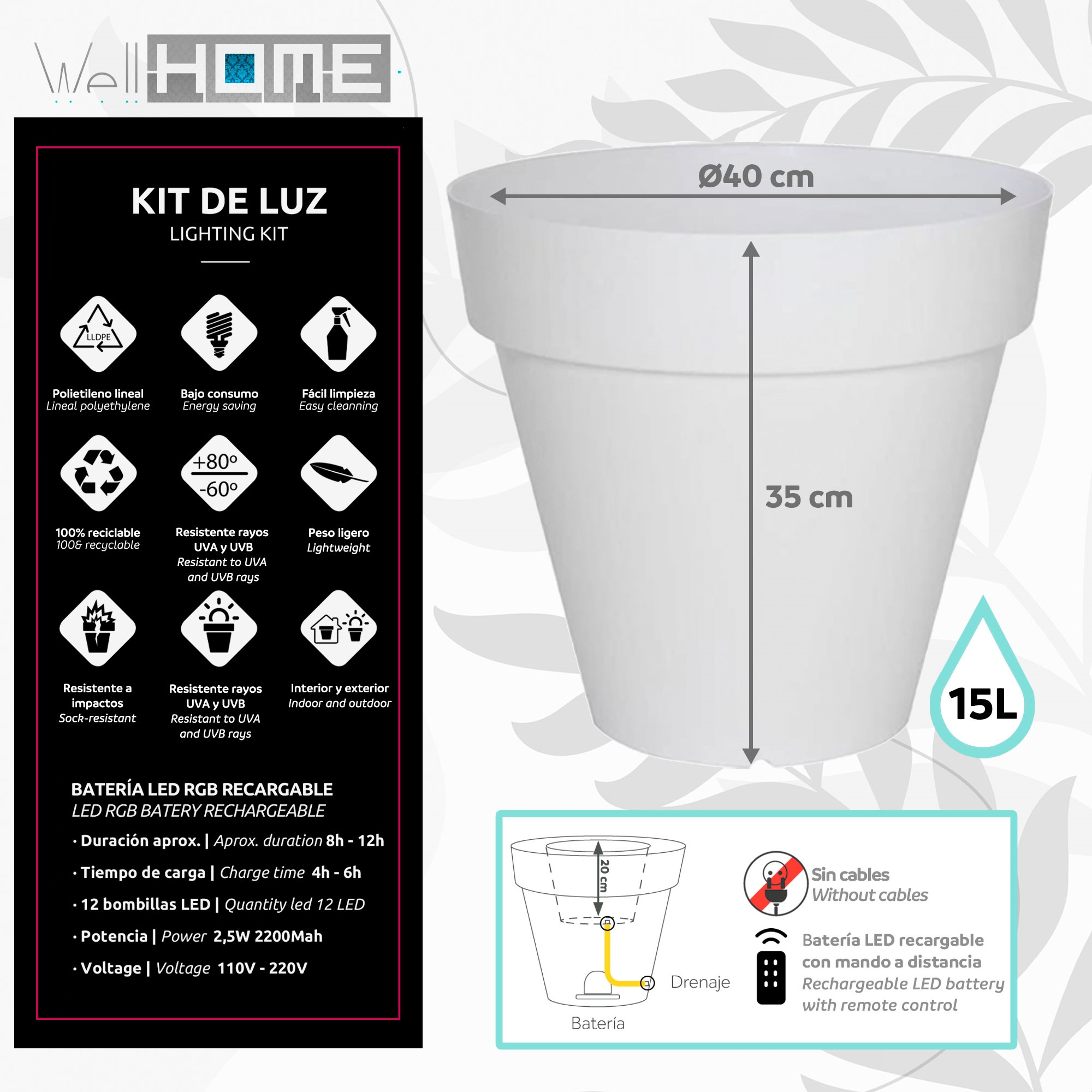 Maceta ALE-X LUZ 40