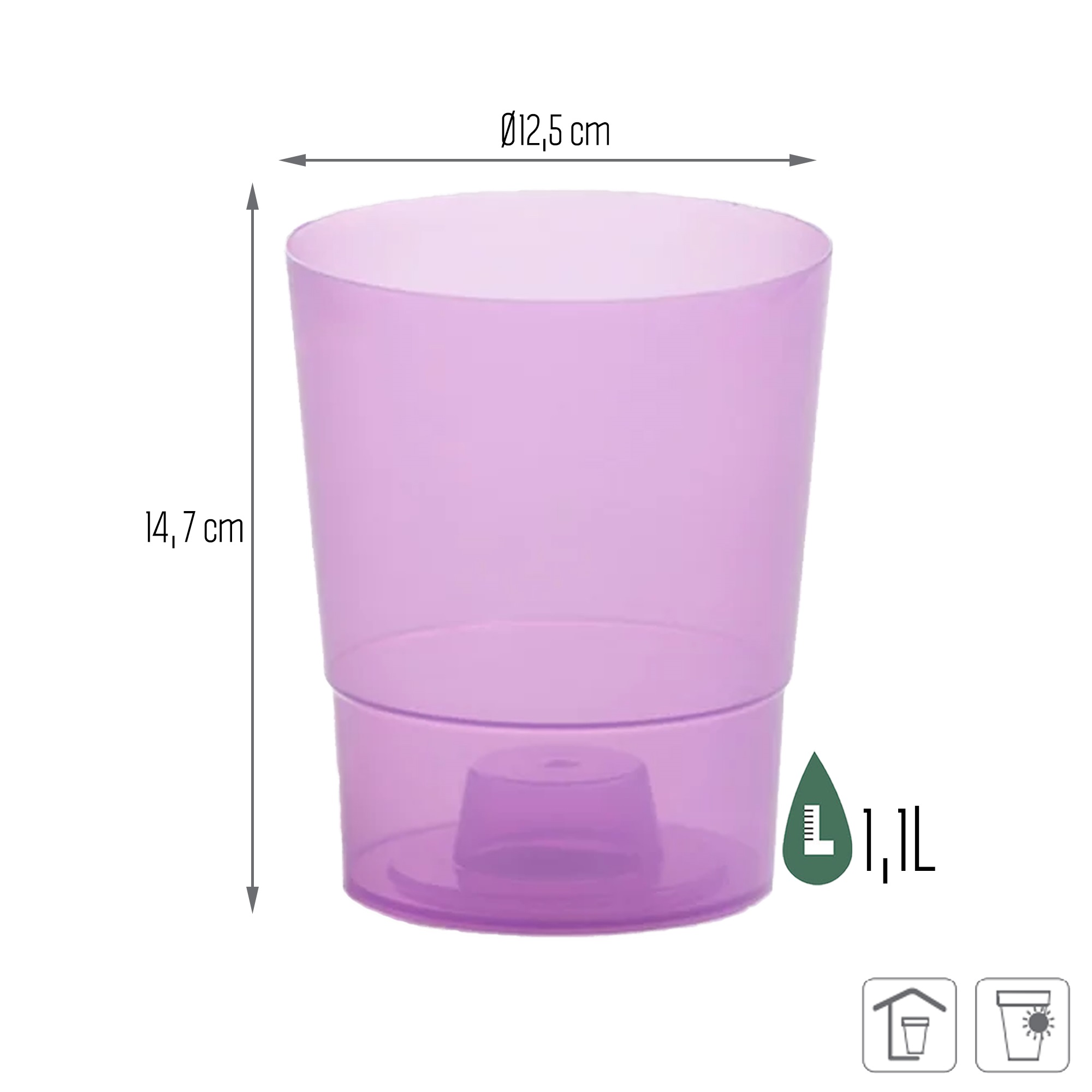 Maceta COUBI ORCHID 1,1L., dimensiones (mm) 125x125x147, color Violeta transparente