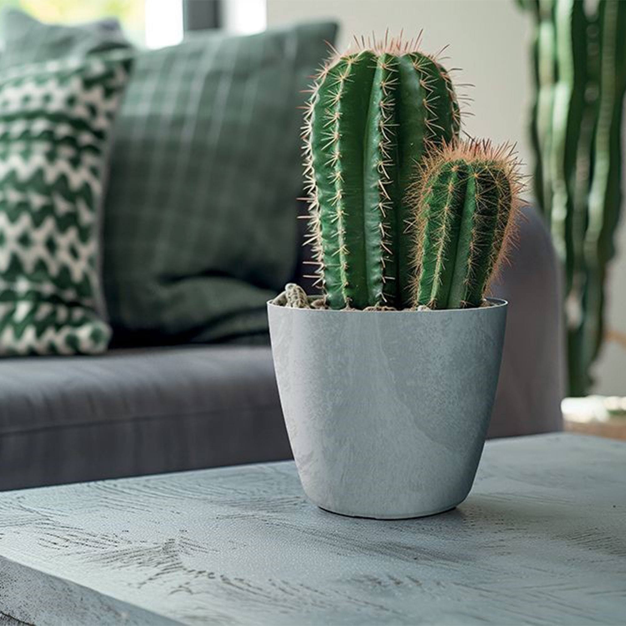 La maceta Mate Beton Effect de 15,8cm tiene un color de marengo y una capacidad de 2L.