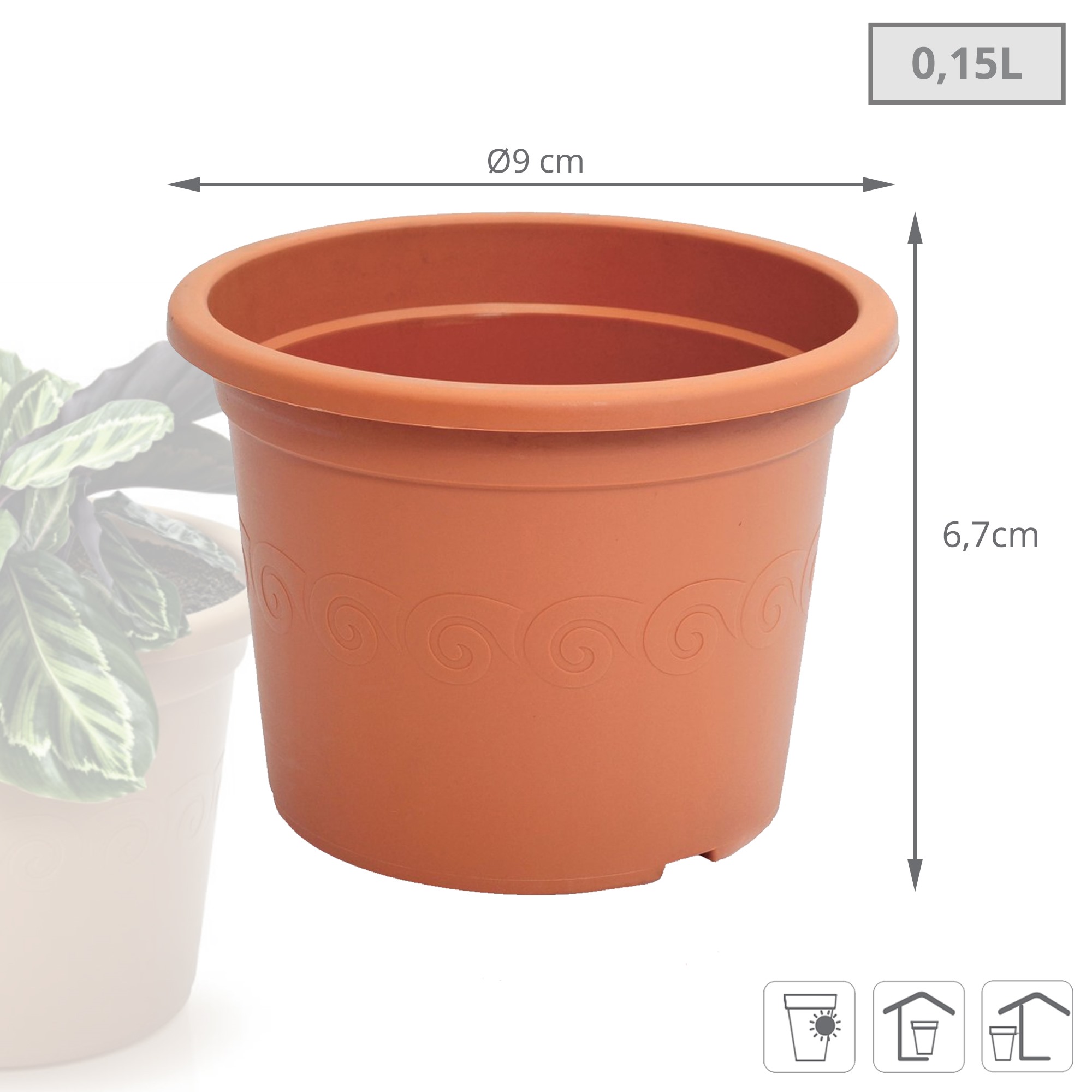 Maceta PLASTICA 0,15L., dimensiones (mm) 90x90x67, color Terracota