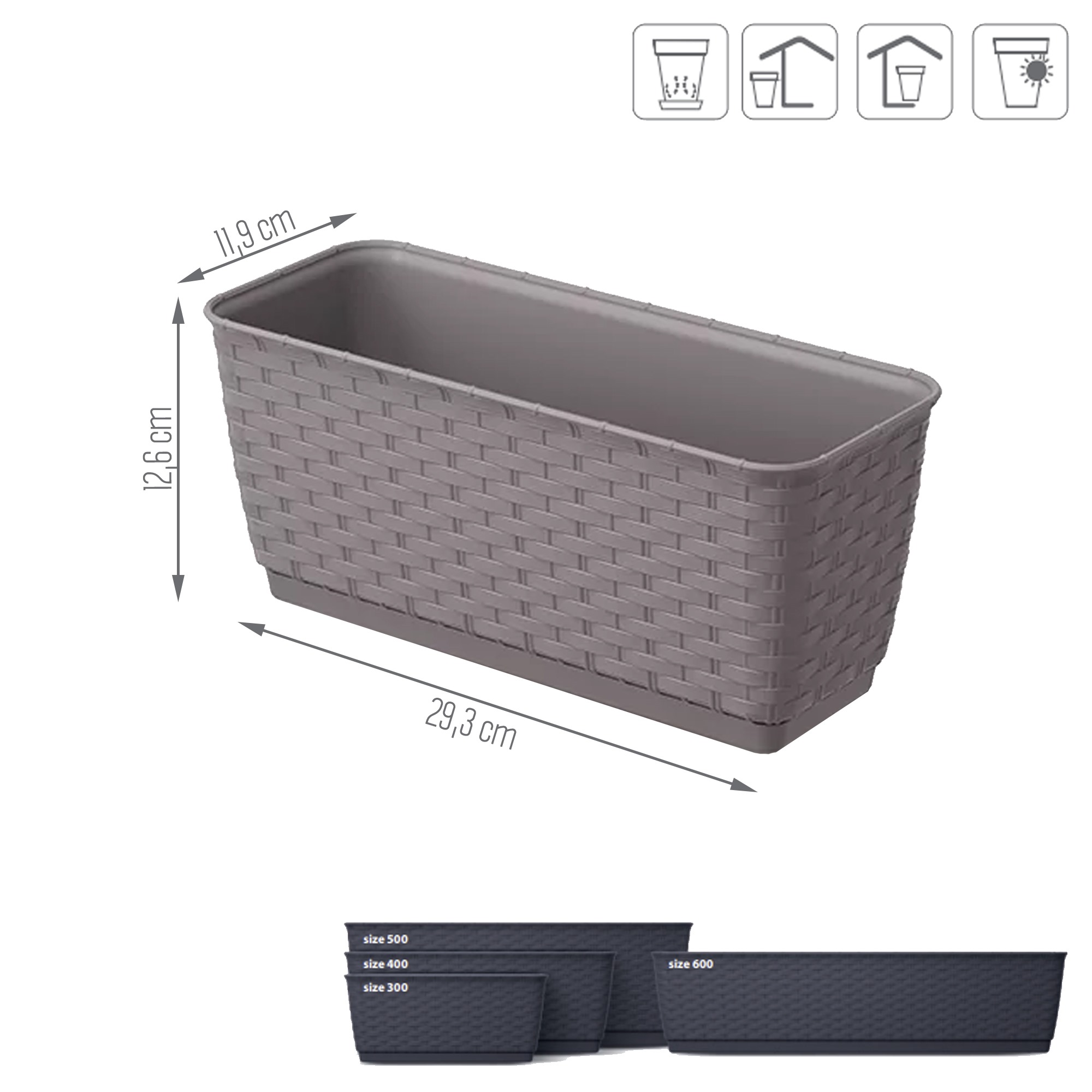 Maceta RATOLLA P 3L., dimensiones (mm) 293x119x126, color Mocca