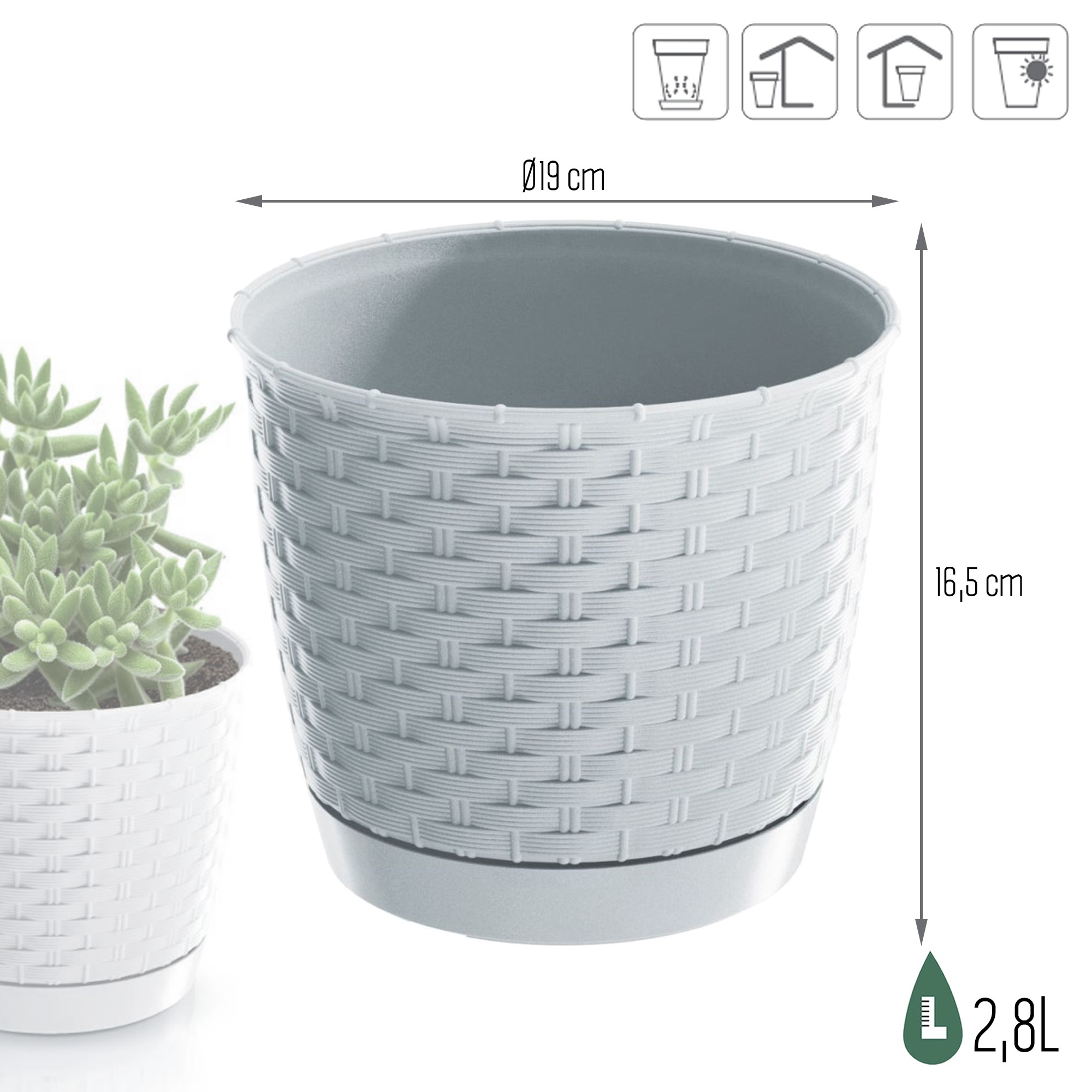 Maceta RATOLLA ROUND 2,8L., dimensiones (mm) 190x190x165, color Blanco