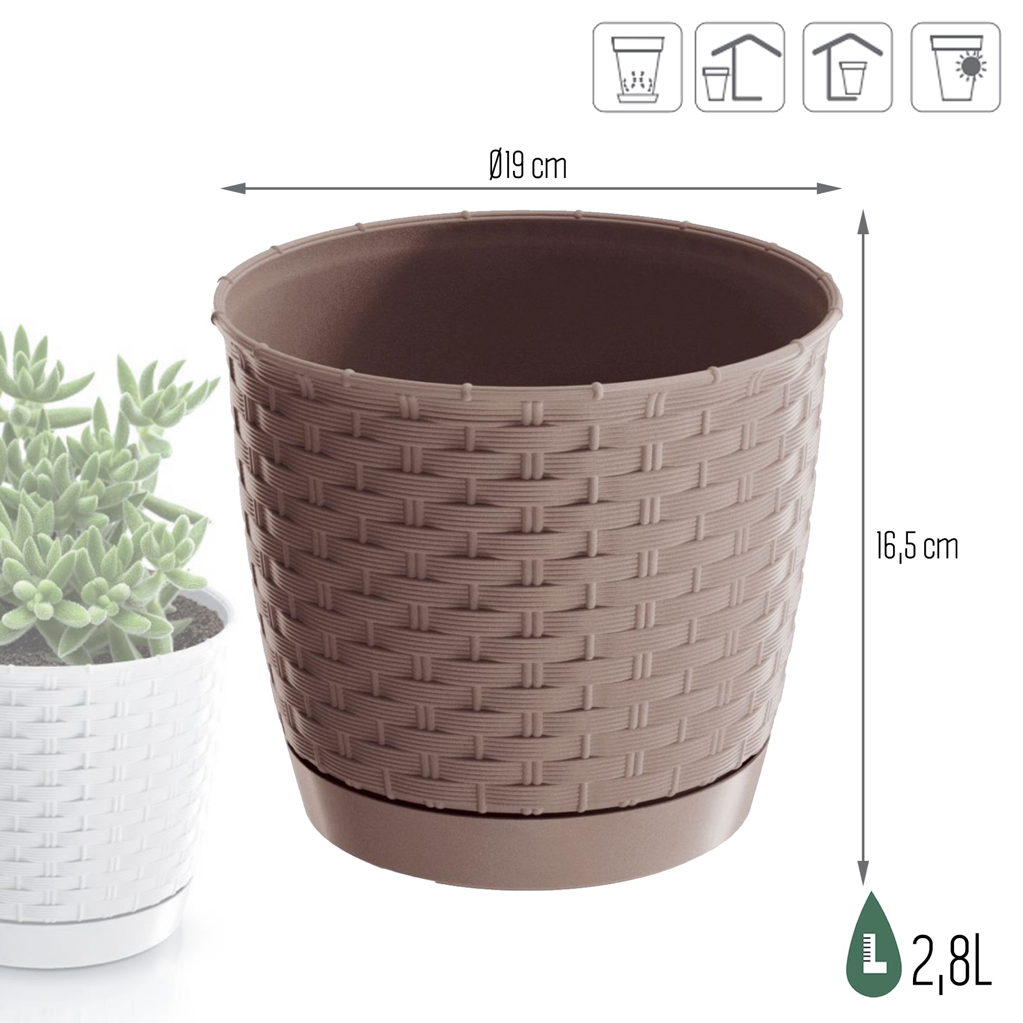 Maceta RATOLLA ROUND 2,8L., dimensiones (mm) 190x190x165, color Mocca