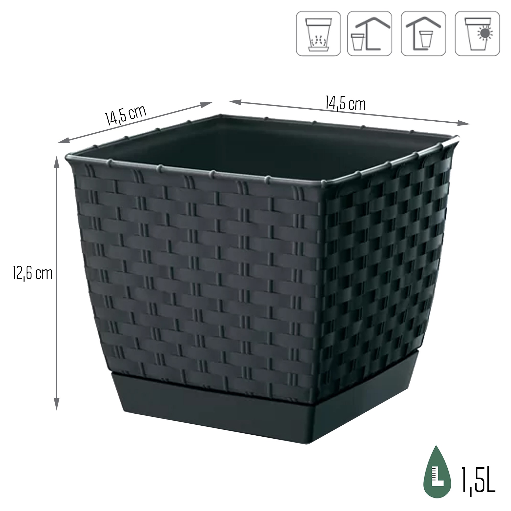 Maceta RATOLLA SQUARE 1,5L., dimensiones (mm) 145x145x126, color Antracita