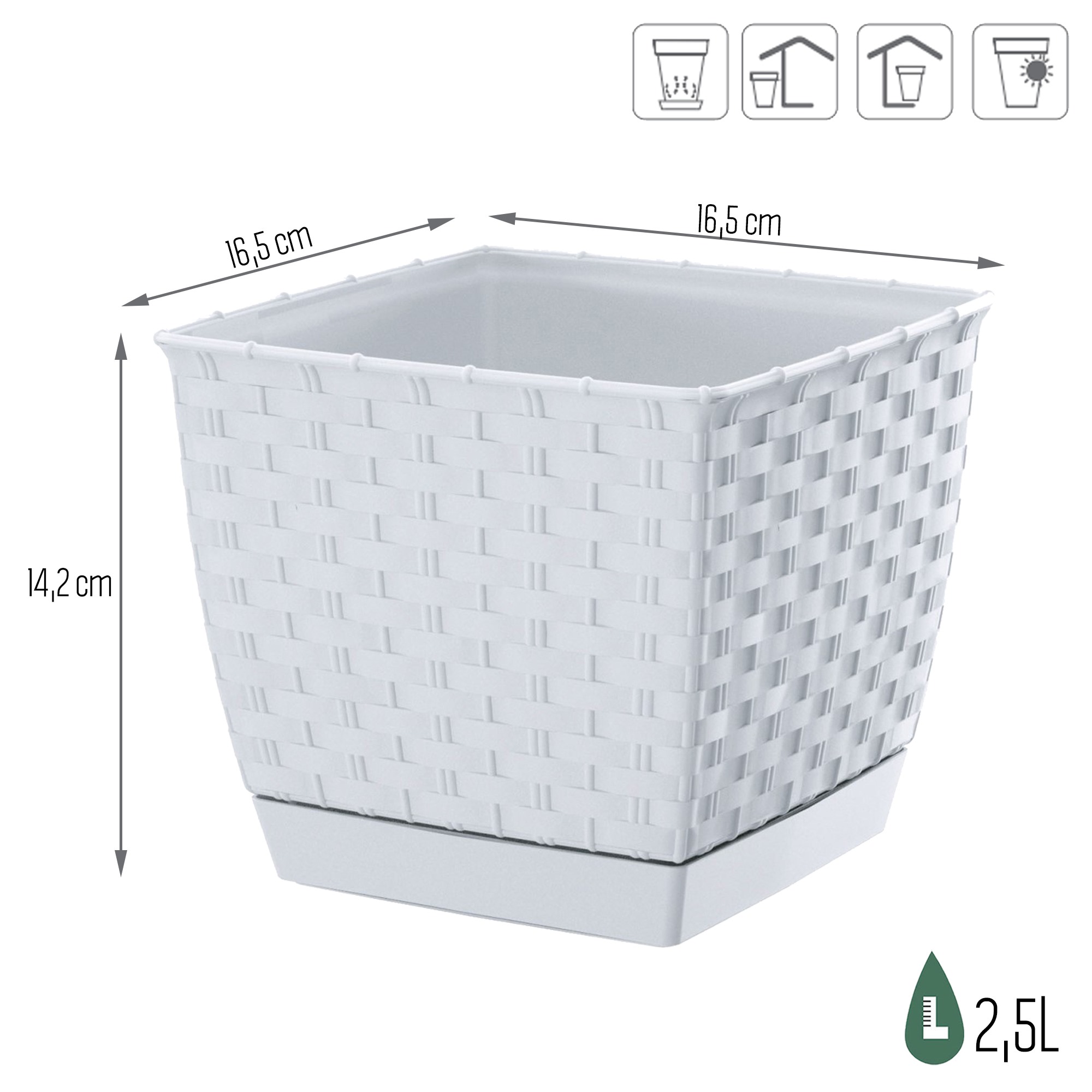 Maceta RATOLLA SQUARE 2,5L., dimensiones (mm) 165x165x142, color Blanco