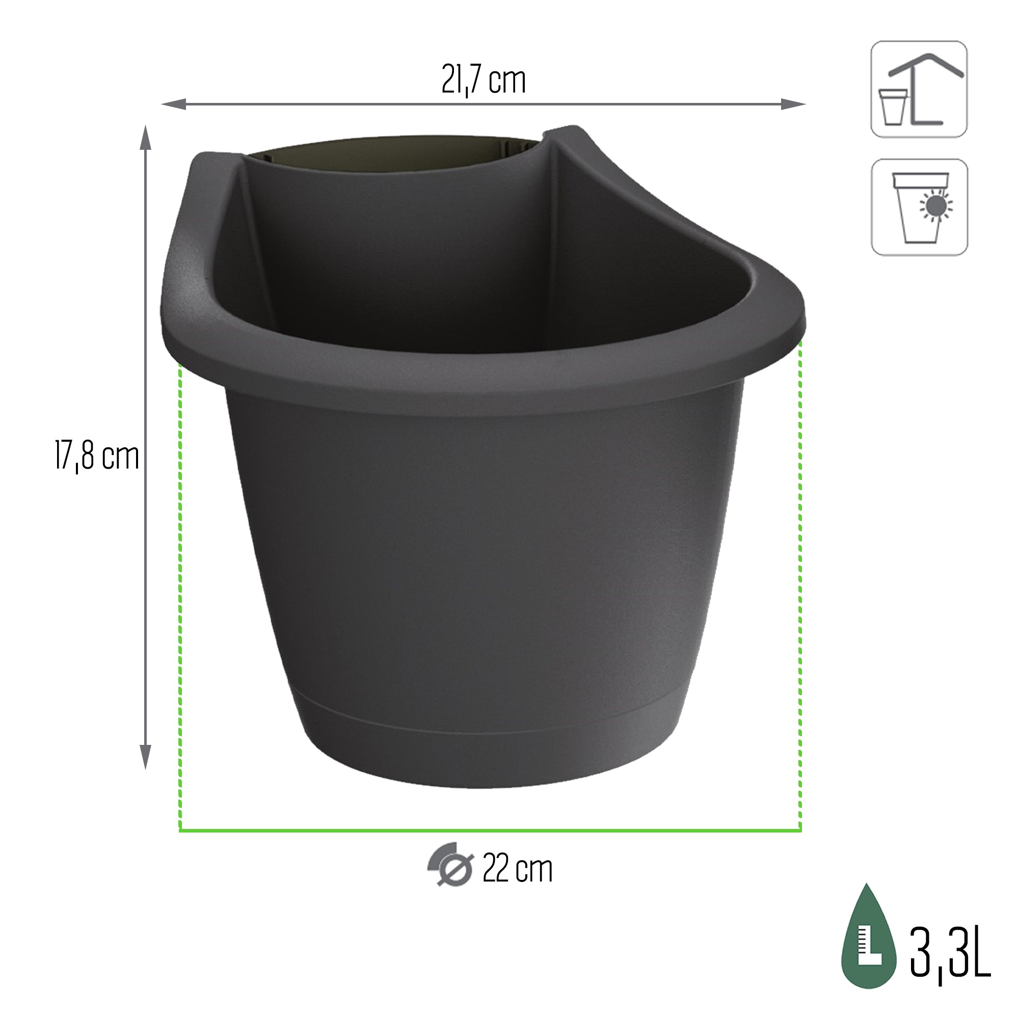 Maceta RESPANA BELT 3,3L., dimensiones (mm) 217x217x178, color Antracita