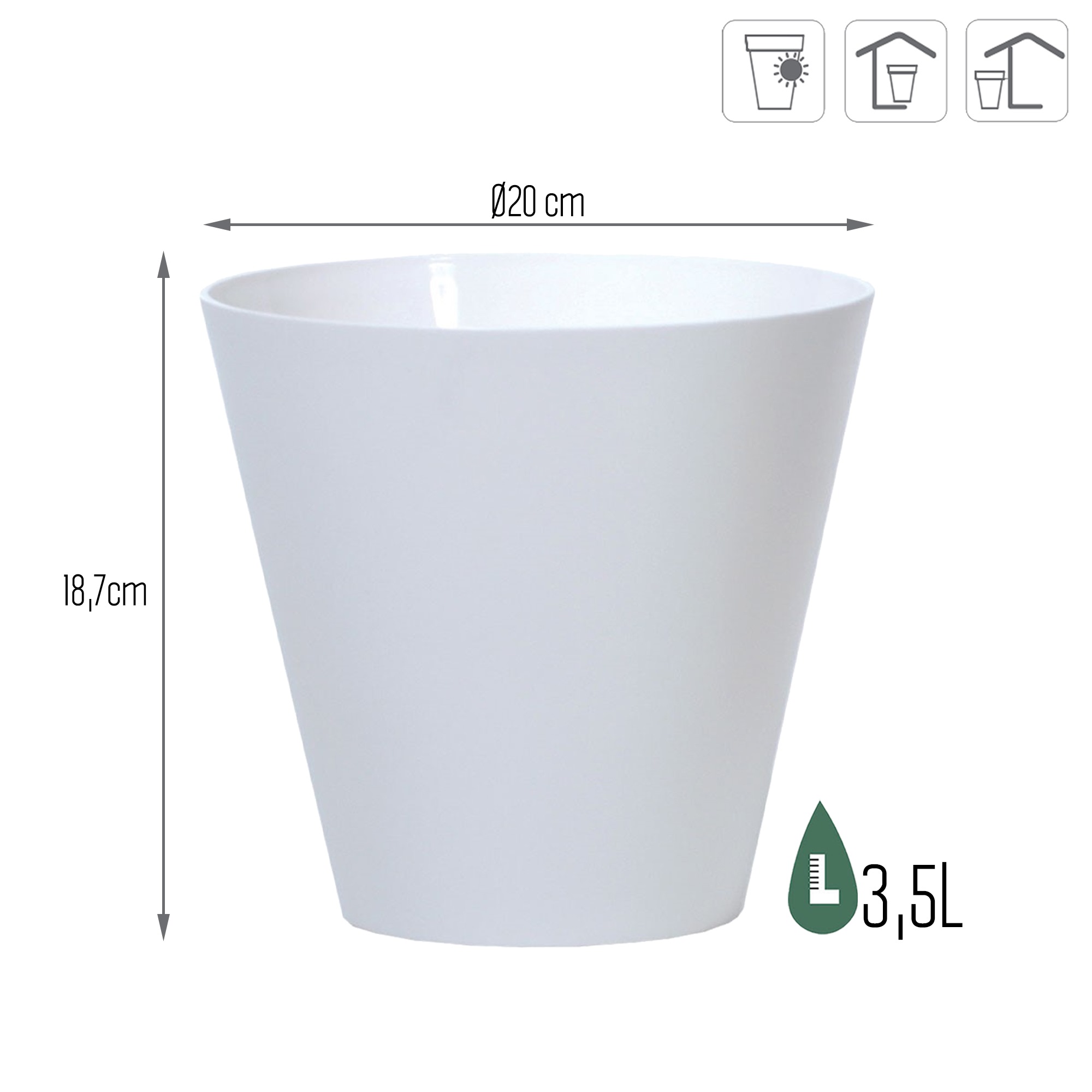 Maceta TUBUS 3,5L., dimensiones (mm) 200x200x187, color Blanco