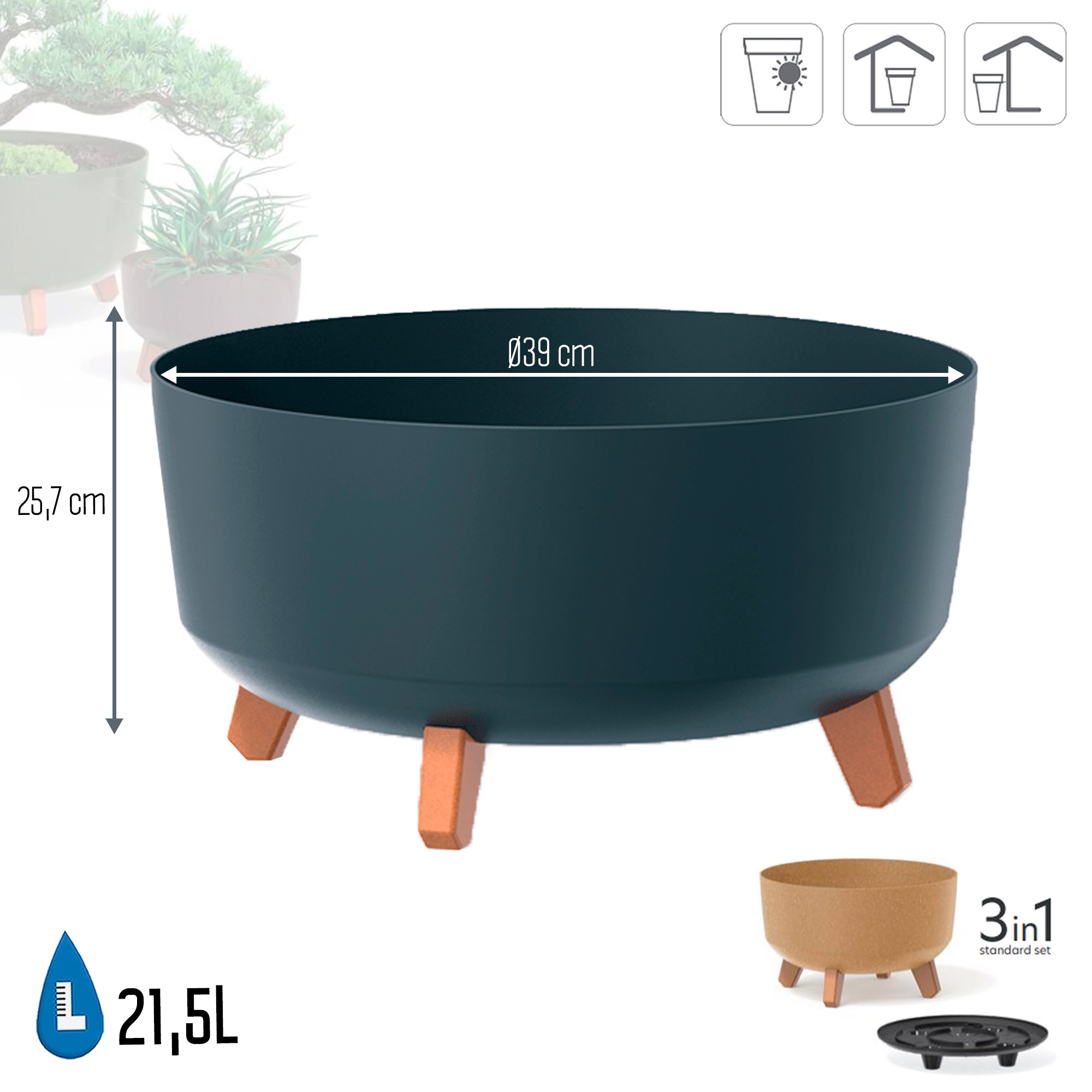Este macetero, como ves en la imagen, tiene un atractivo color y diseño; se trata de un macetero en color antracita, y con unas dimensiones de 39cm x 39cm x 25,7cm cm, con capacidad para 21,5 litros