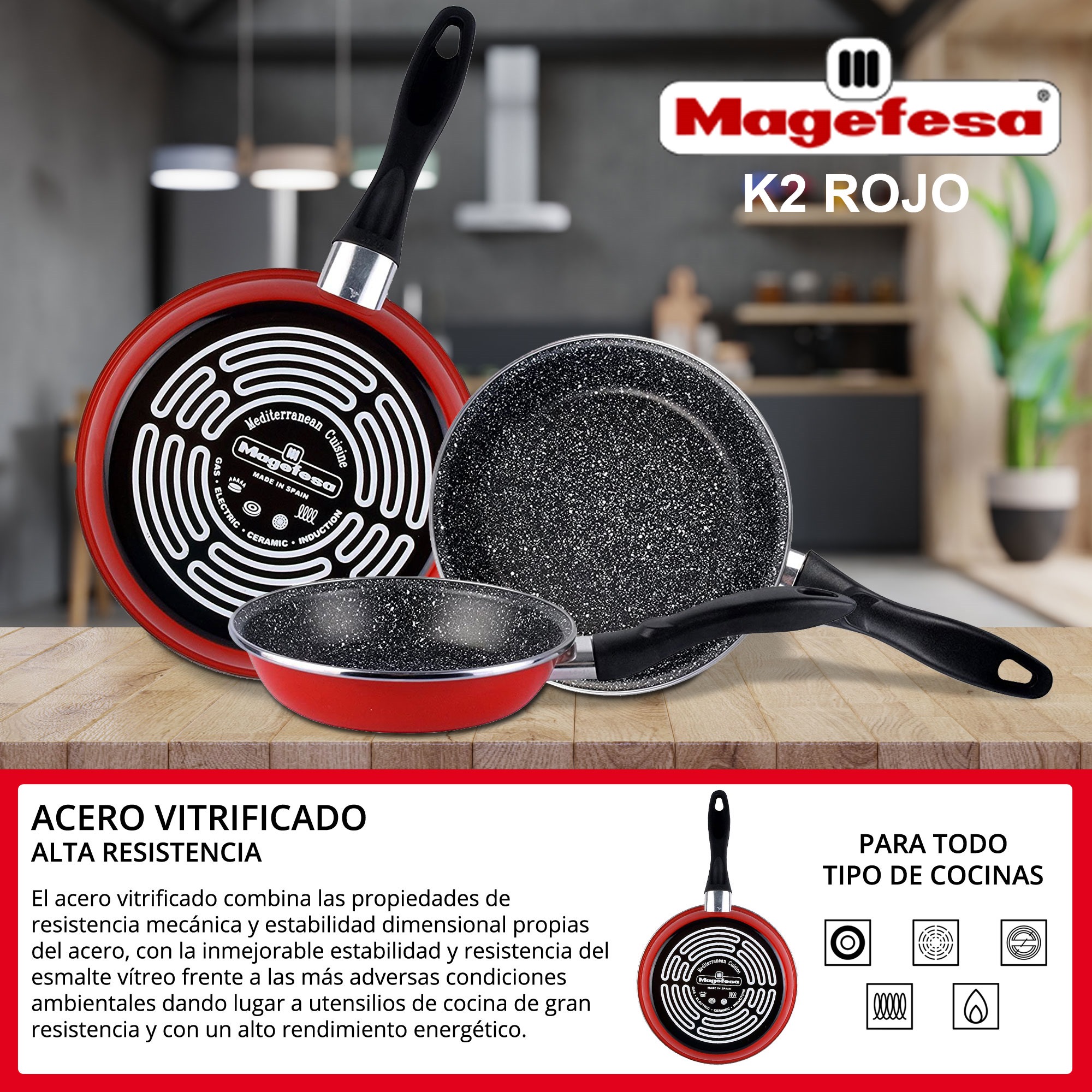 La colección K2 ROJO de Magefesa presenta una selección de menaje ideal para tu hogar; este producto presenta las siguientes características principales: