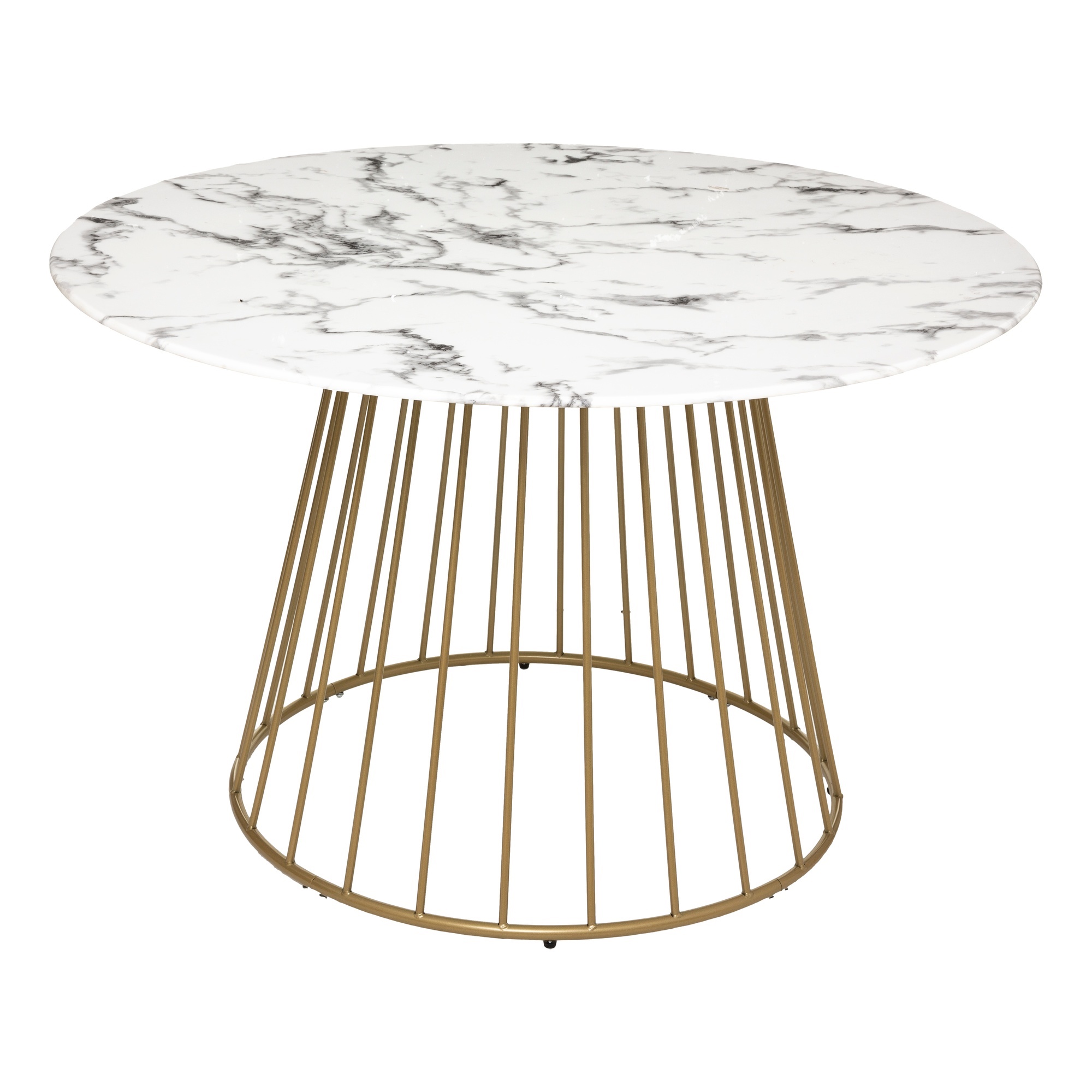 Mesa de comedor «Rayo», tapa de cristal templado efecto mármol, blanco D120 cm