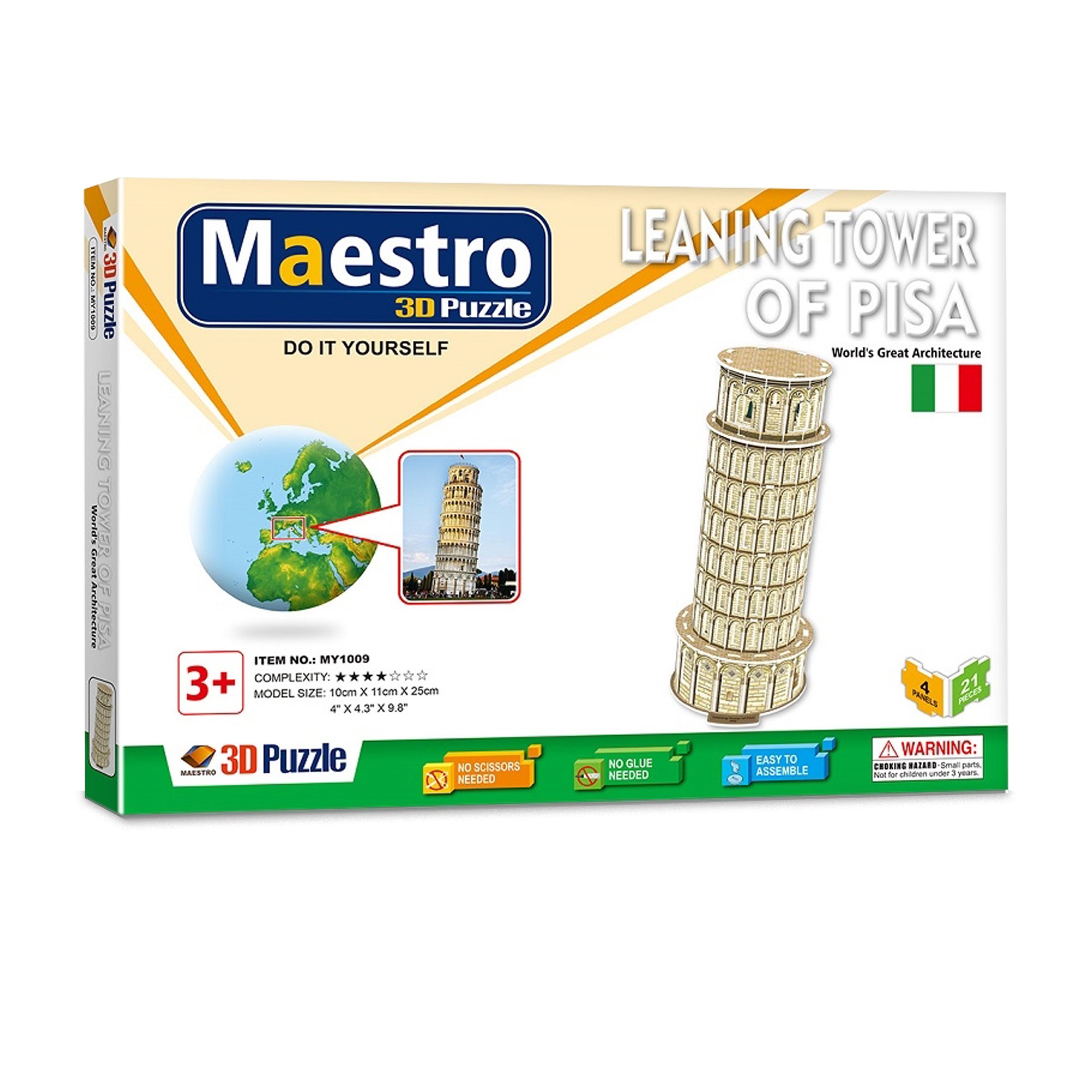 Puzzle en 3D – modelo de Torre de Pisa con presentación en caja personalizada