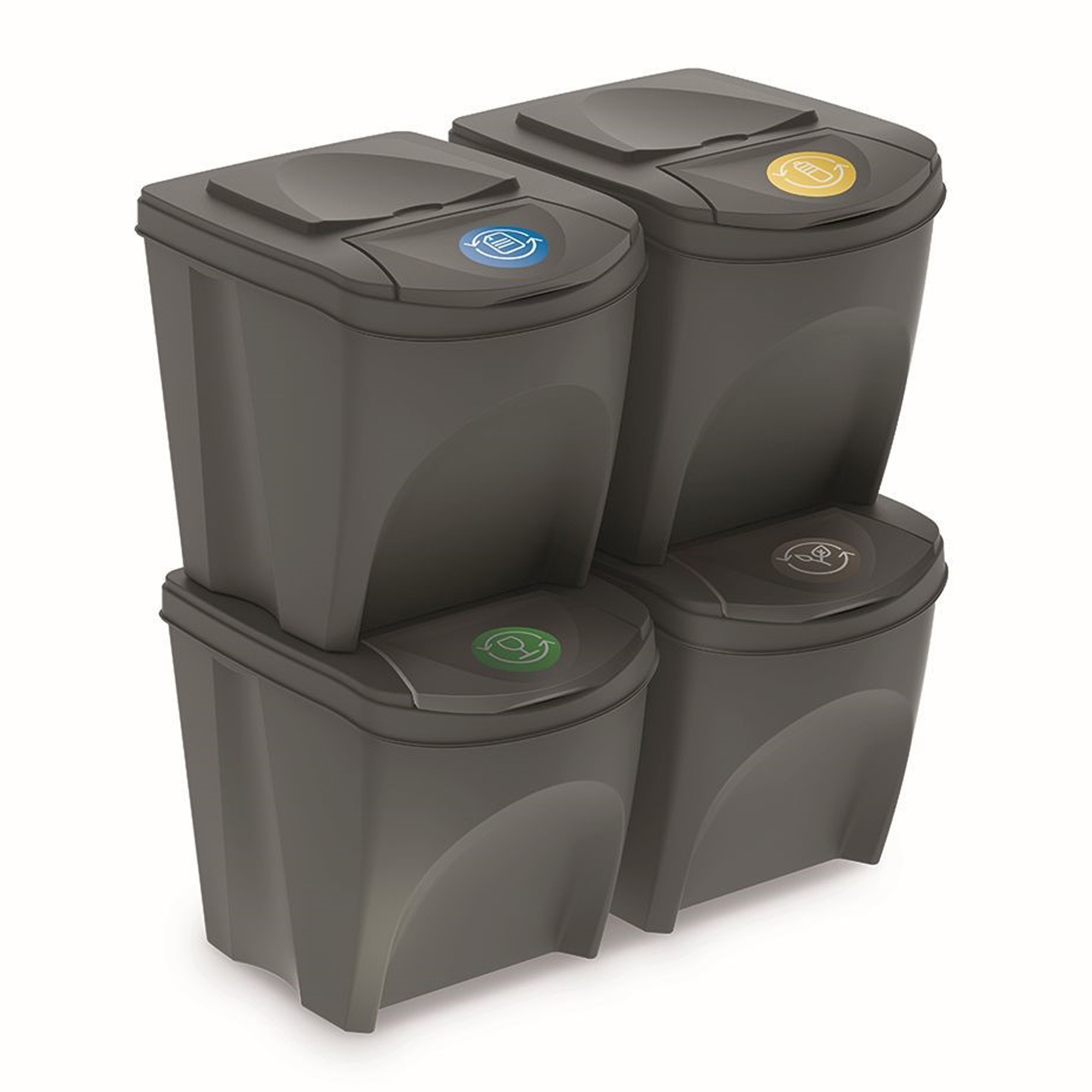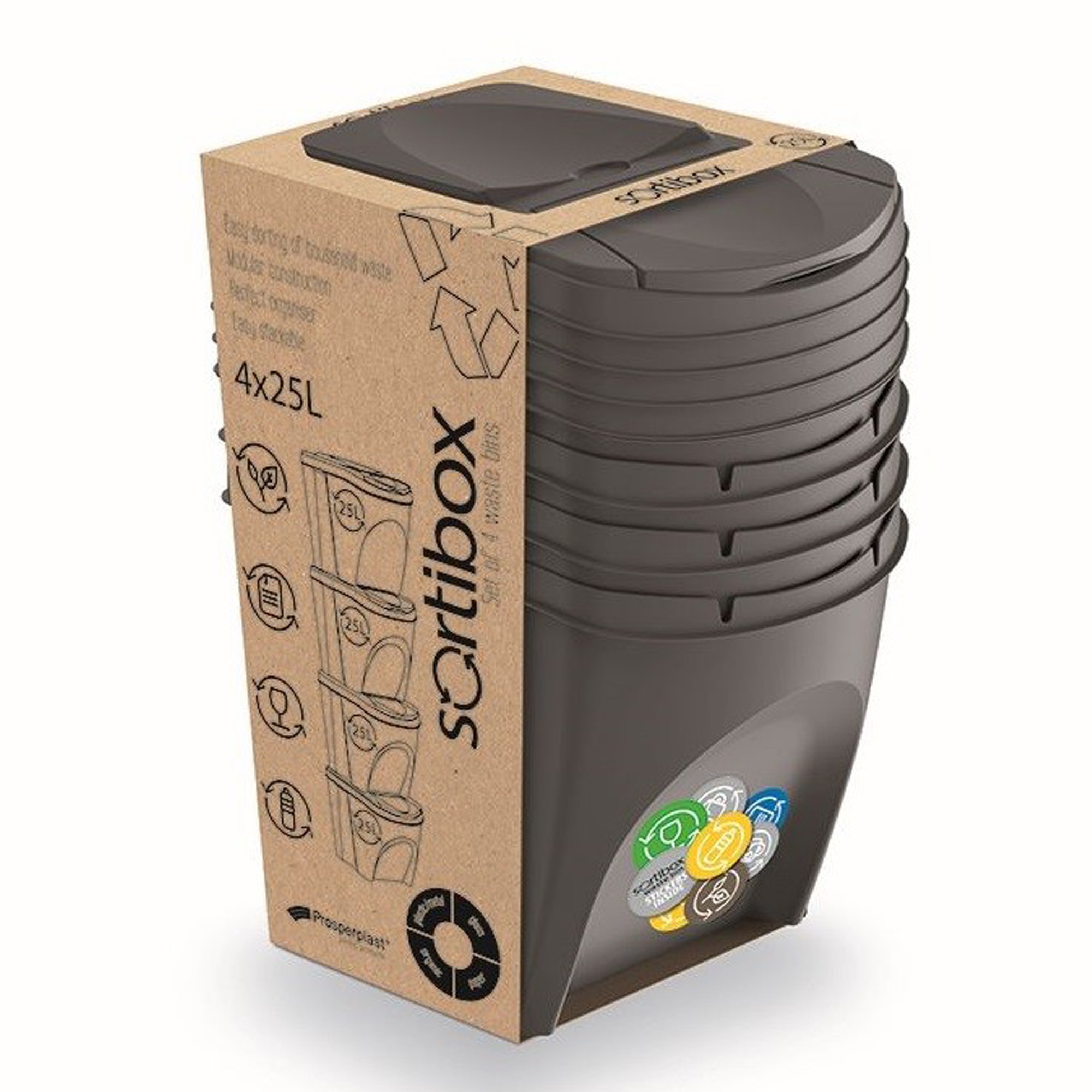 Reacondicionado – Juego de 4 cubos de reciclaje 100L Prosperplast Sortibox de plastico en color gris
