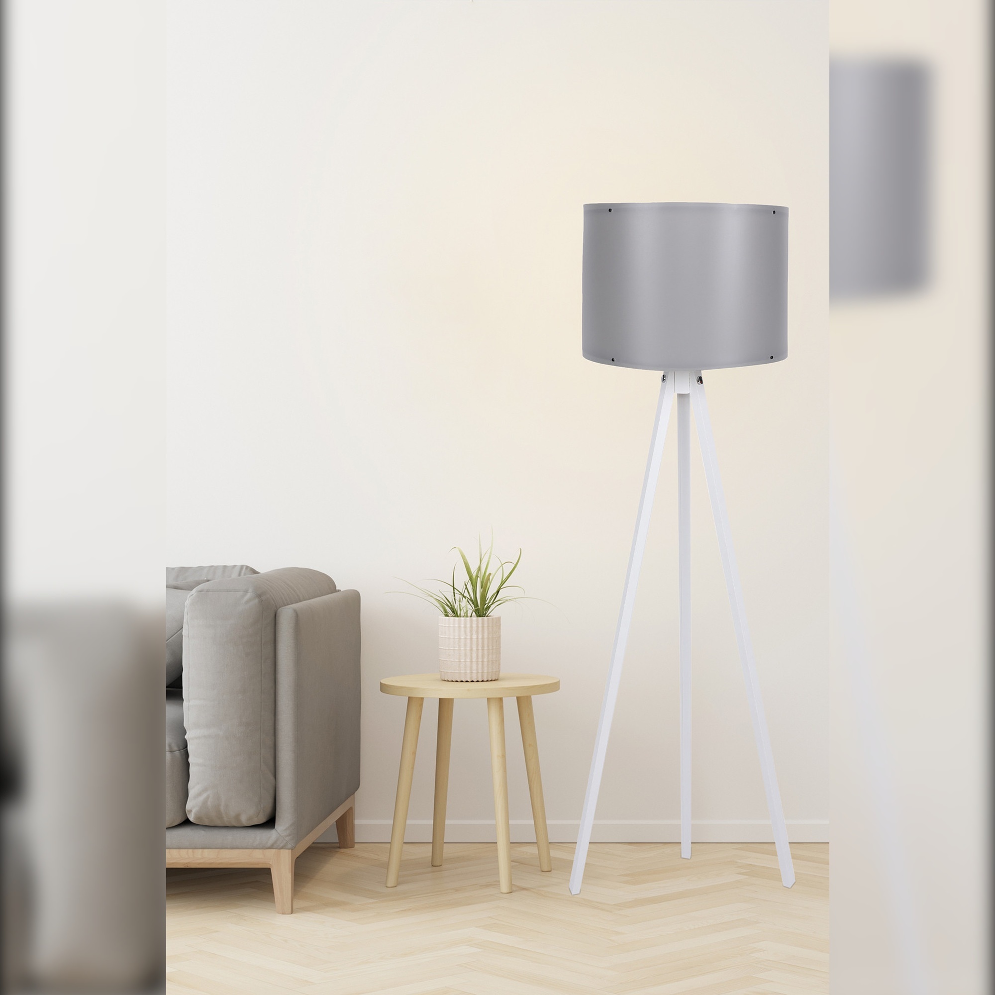 Reacondicionado – Lámpara de pie con estructura de MDF color gris Blanco