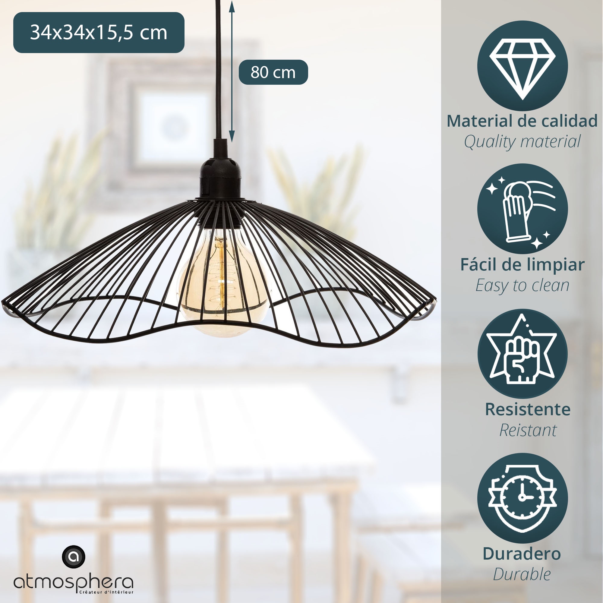 El cable tiene una longitud de 80 cms., y la pantalla unas dimensiones de 34 cms. de diámetro x 15,5 cms.
