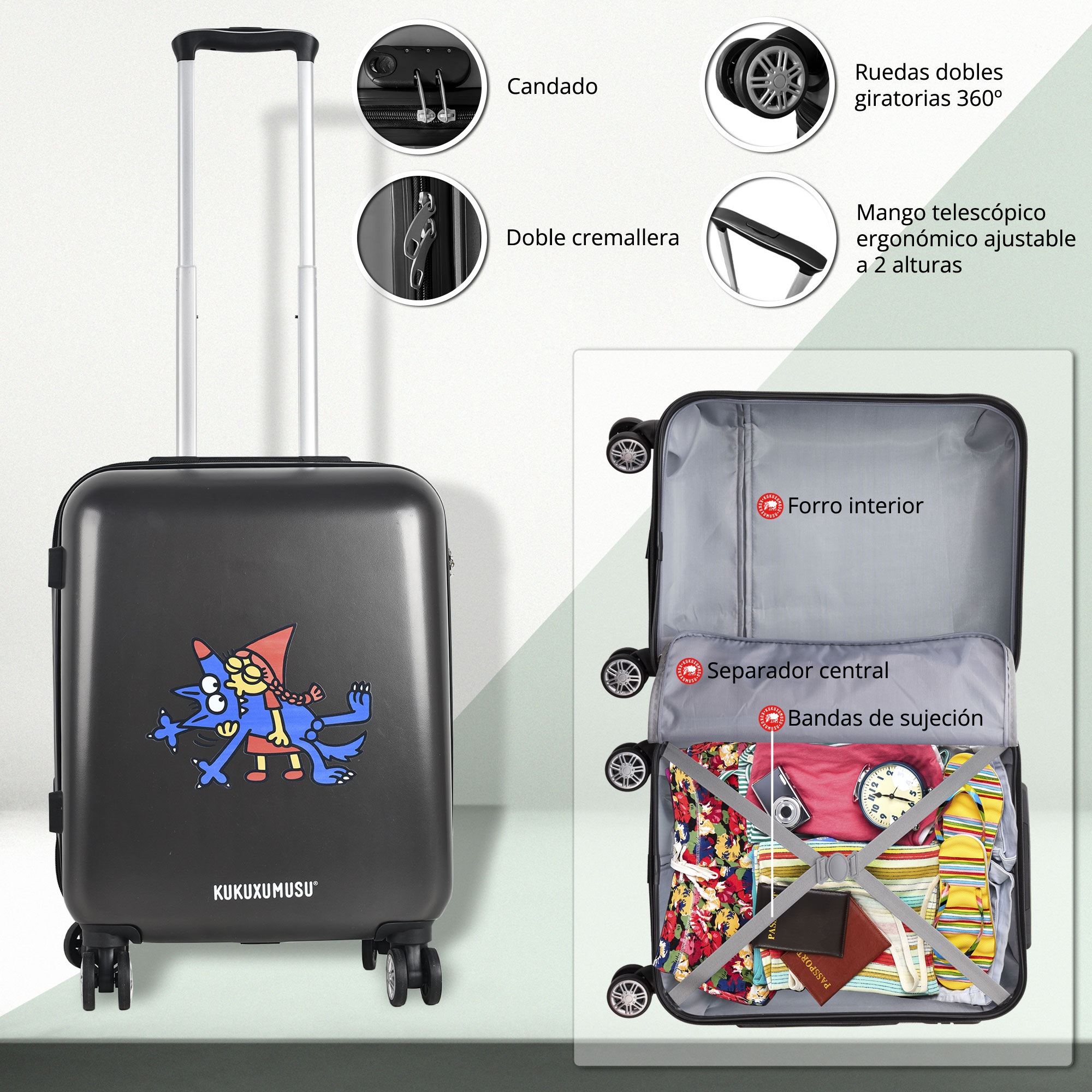 Reacondicionado – Maleta con ruedas gris oscuro caperucita modelo Besukao – Kukuxumusu