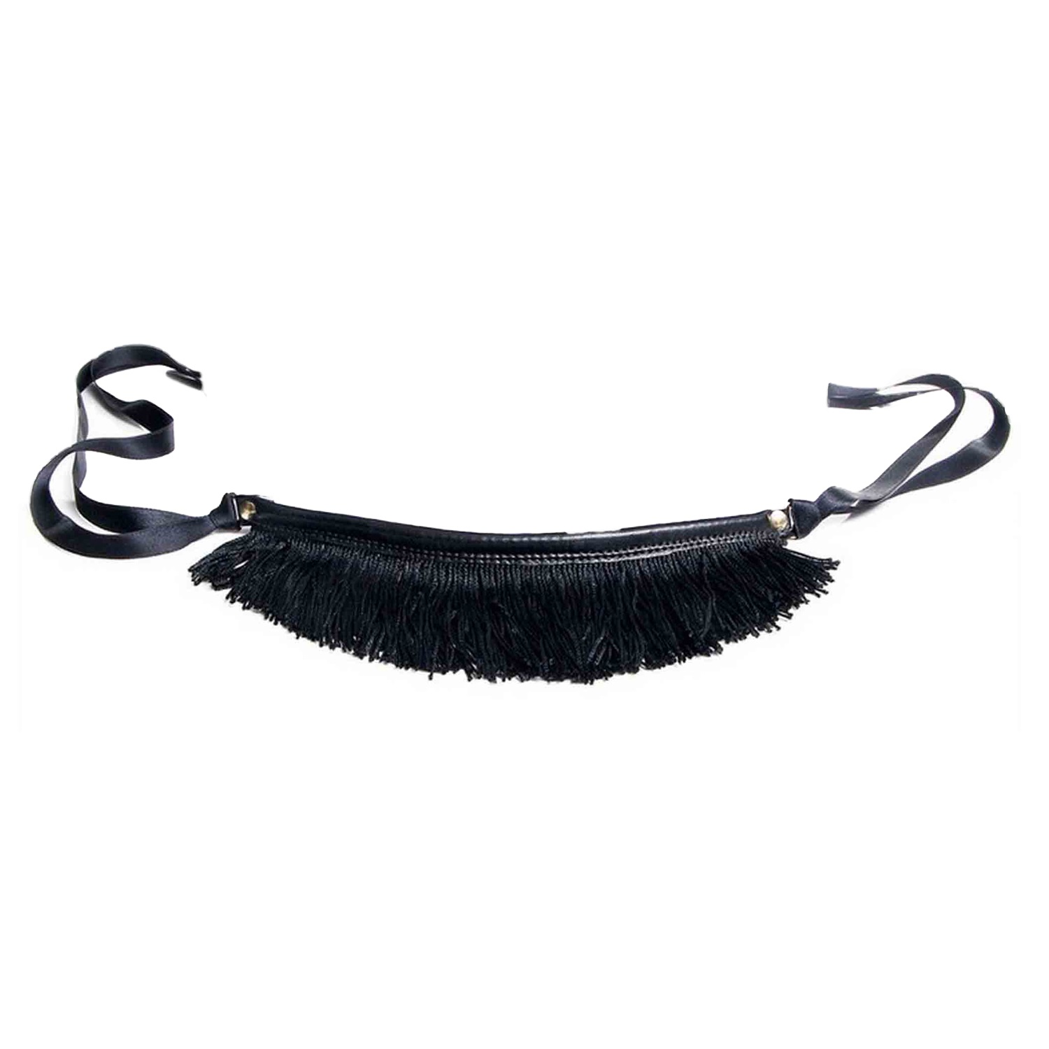 Venda con flecos de poliéster, tira de piel 100% genuina y tiras de raso.