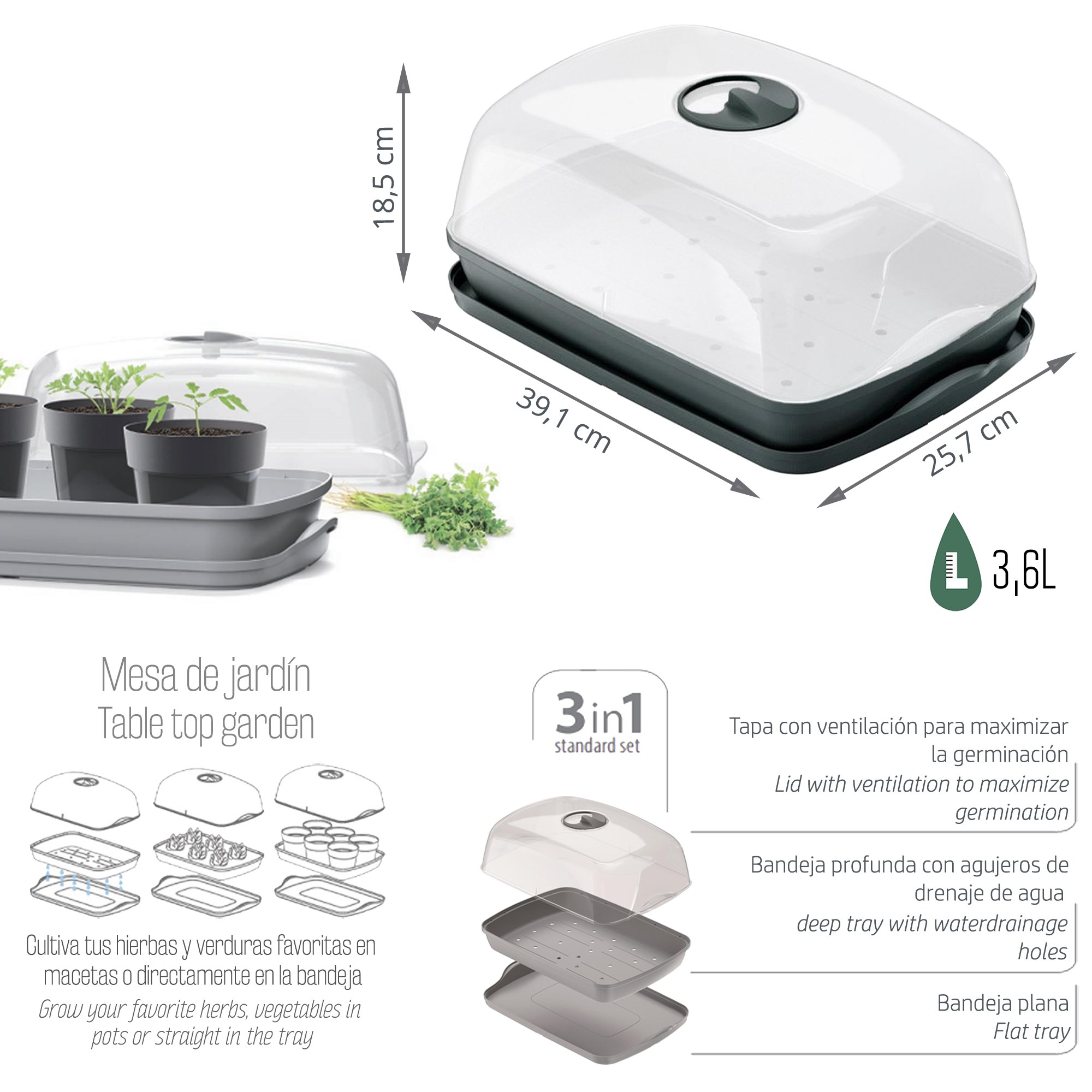 Semillero/bandeja multiusos RESPANA TABLE GREENHOUSE 3,6L., dimensiones (mm) 391x257x185, color Antracita