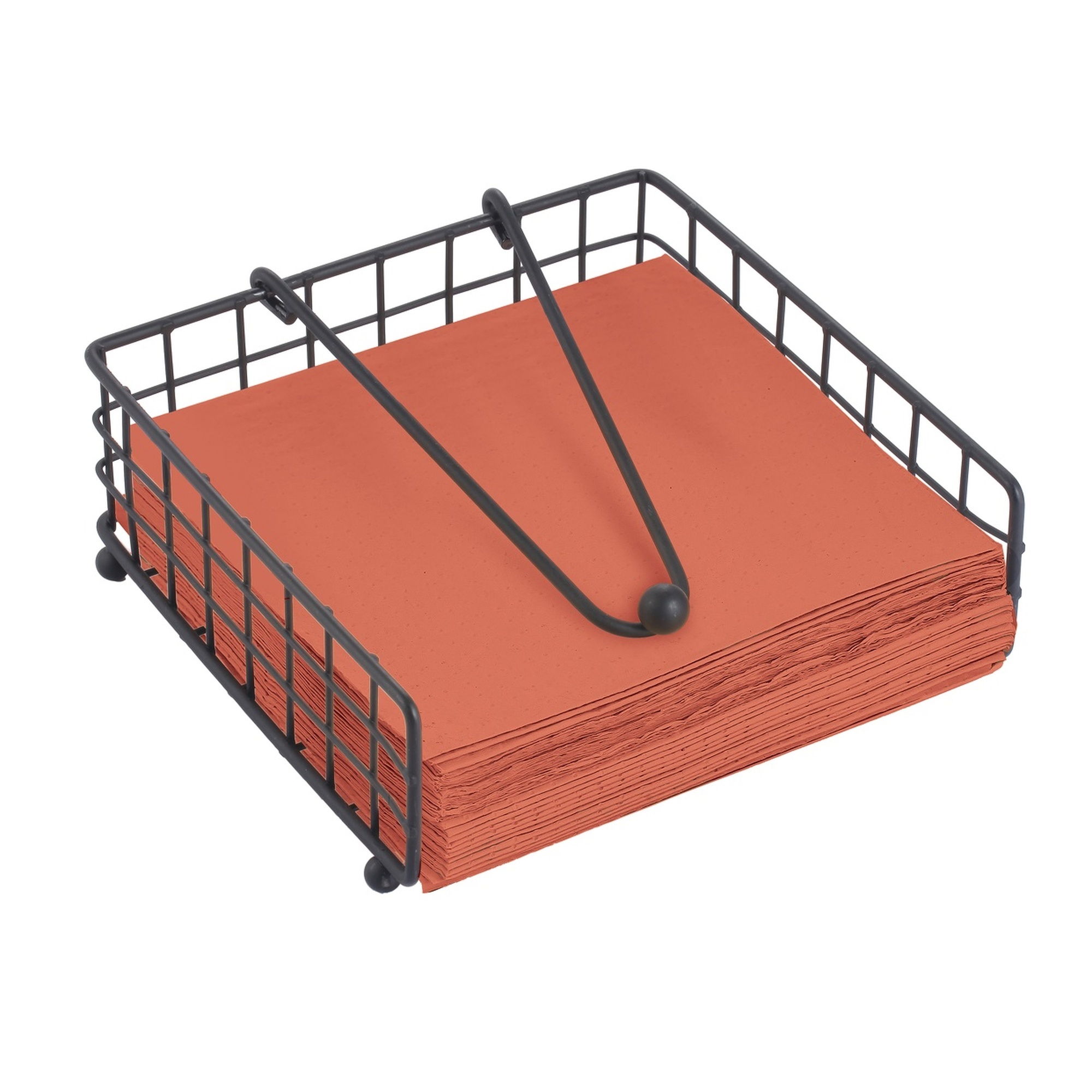 Simple y estable: el servilleta de metal tiene una superficie negra y un diseño de línea simple.