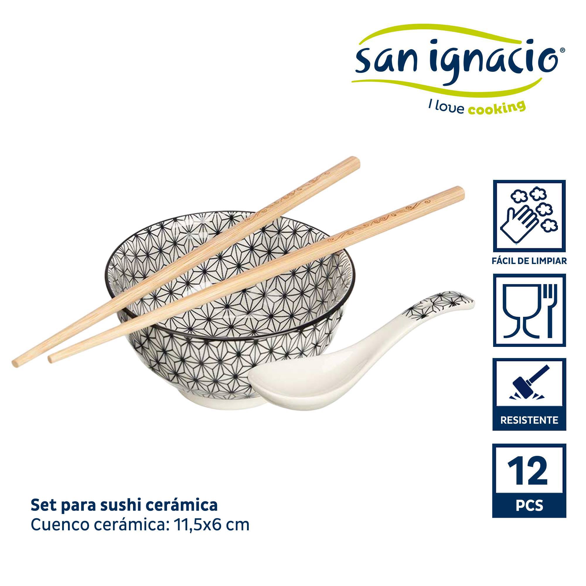 Set completo: Este set incluye 12 piezas de sushi en elegante blanco, perfectas para deleitar a tus invitados con combinaciones deliciosas.