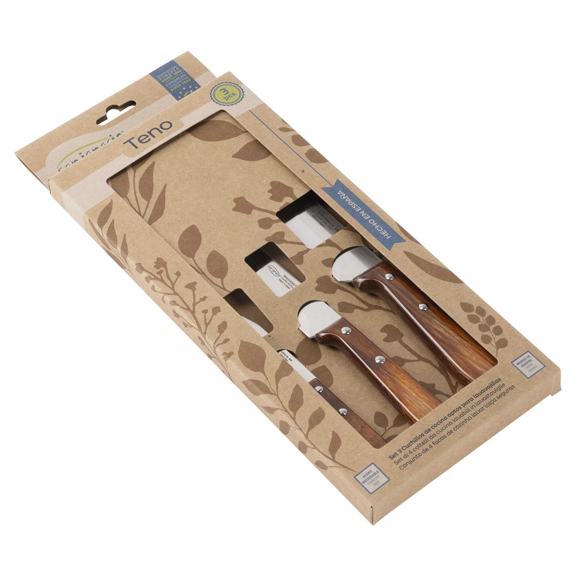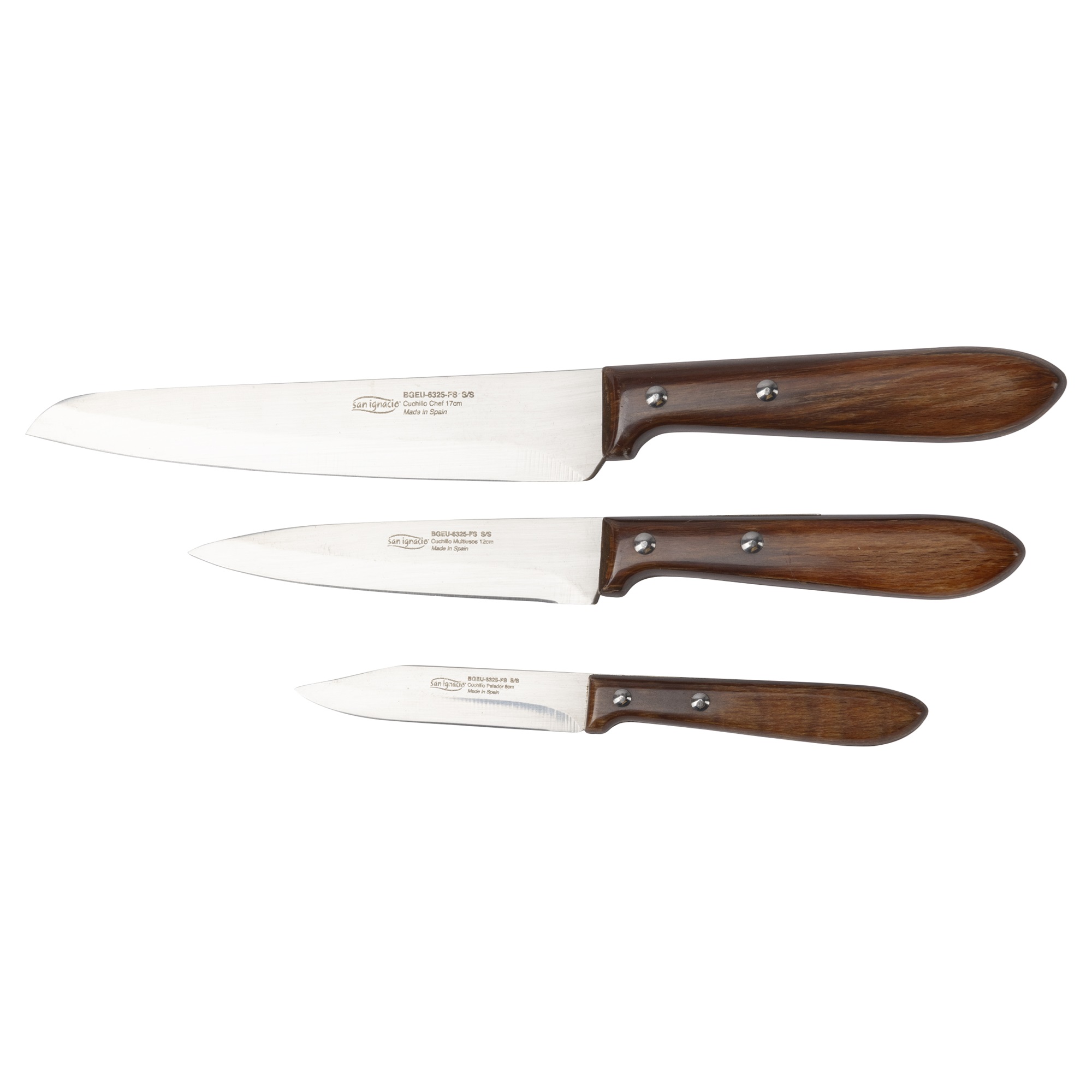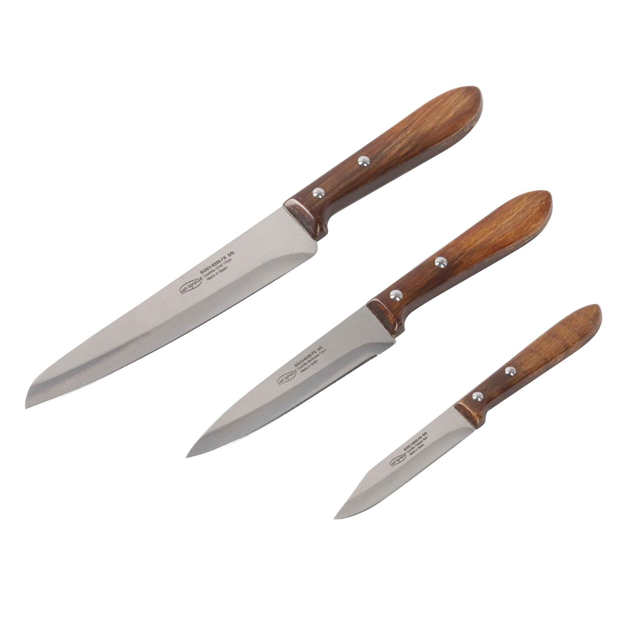 Set 3 cuchillos hierro + madera prensada con mango Durofol San Ignacio.