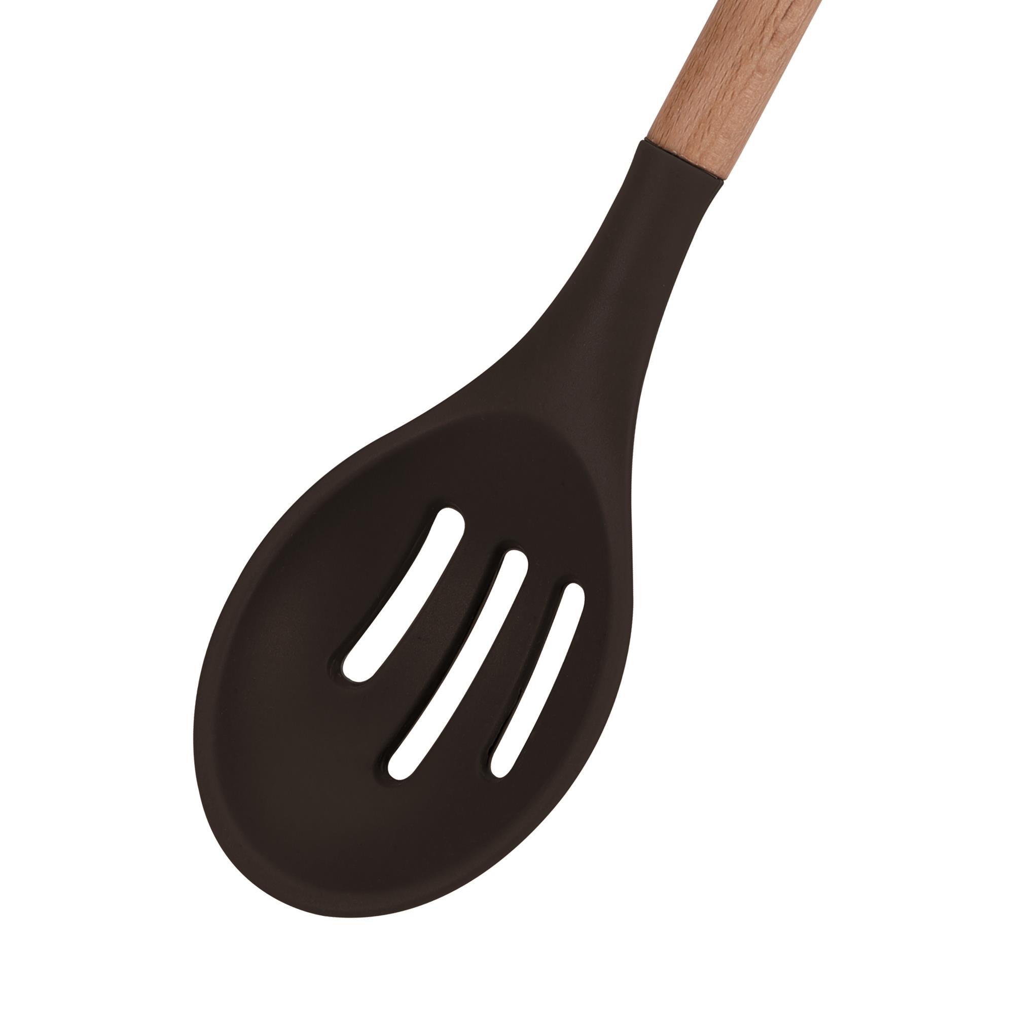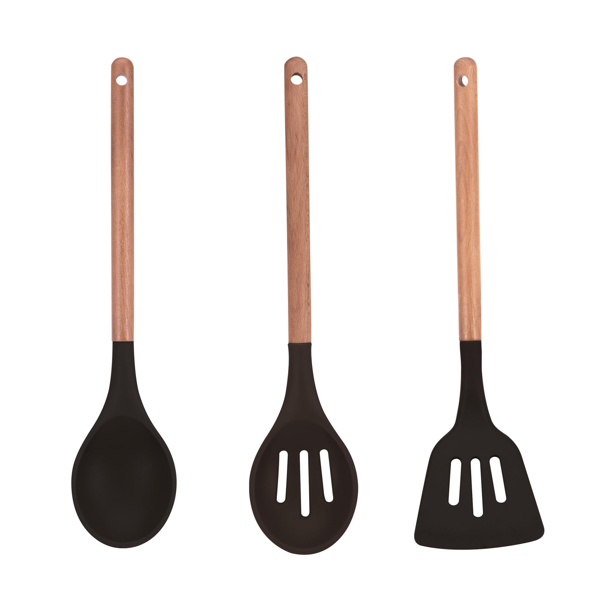 Juego de 3 utensilios de cocina BERGNER con mango fabricado en madera de acacia y cabezales en silicona. Se compone de :