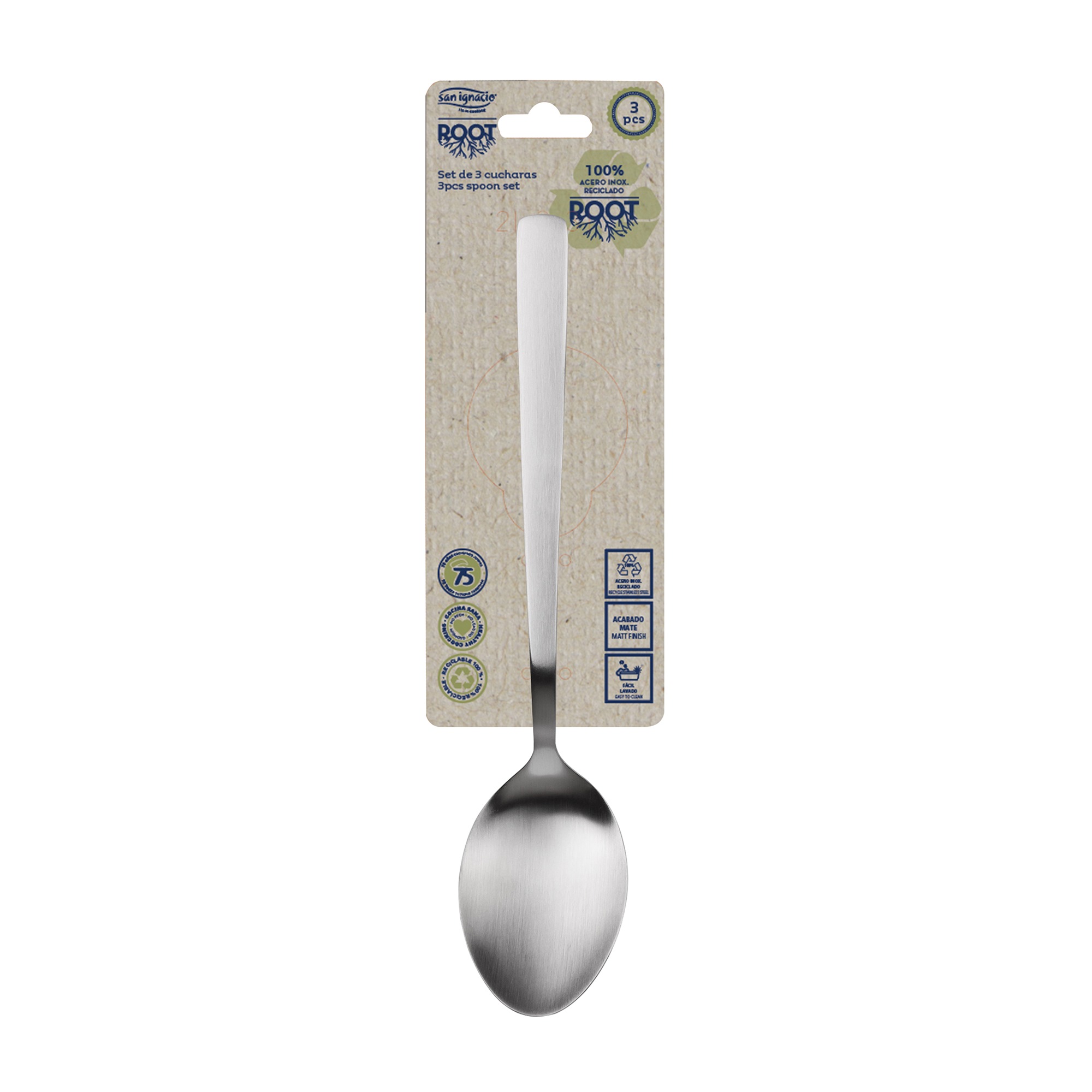 Set 3pc cuchara acero inox reciclado mate root