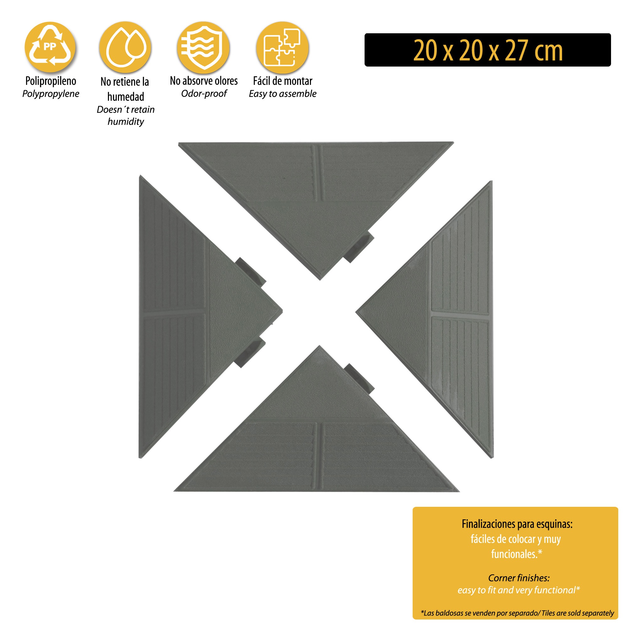 Set de 4 bordes en triángulo, para esquinas para las superficies COMBI – por ejemplo, si has hecho un diseño geométrico ensamblando las baldosas en diagonal, para cerrar el hueco que queda.