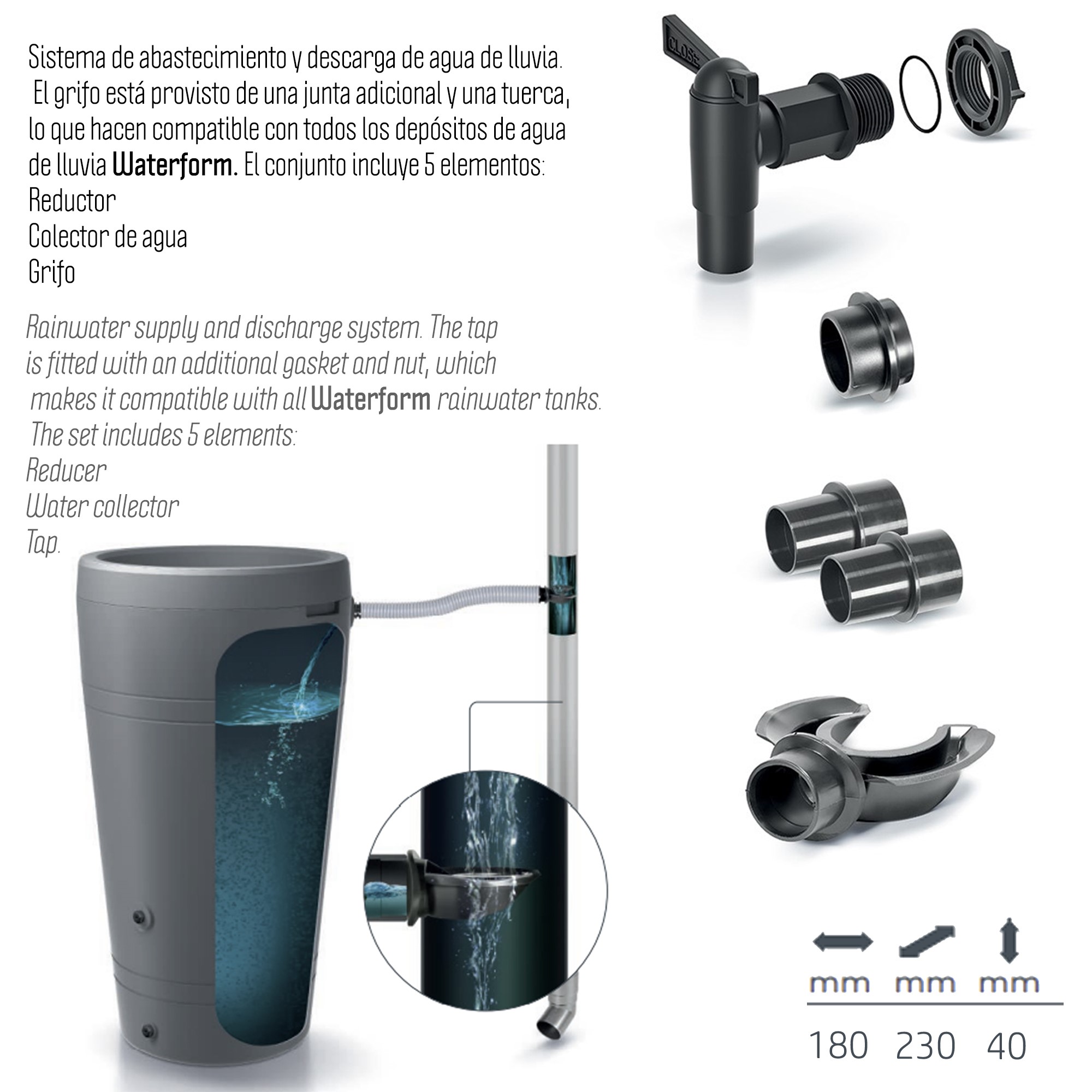 Set de accesorios para depósitos/barriles de agua de lluvia (5 piezas) de la colección ICANSET 3