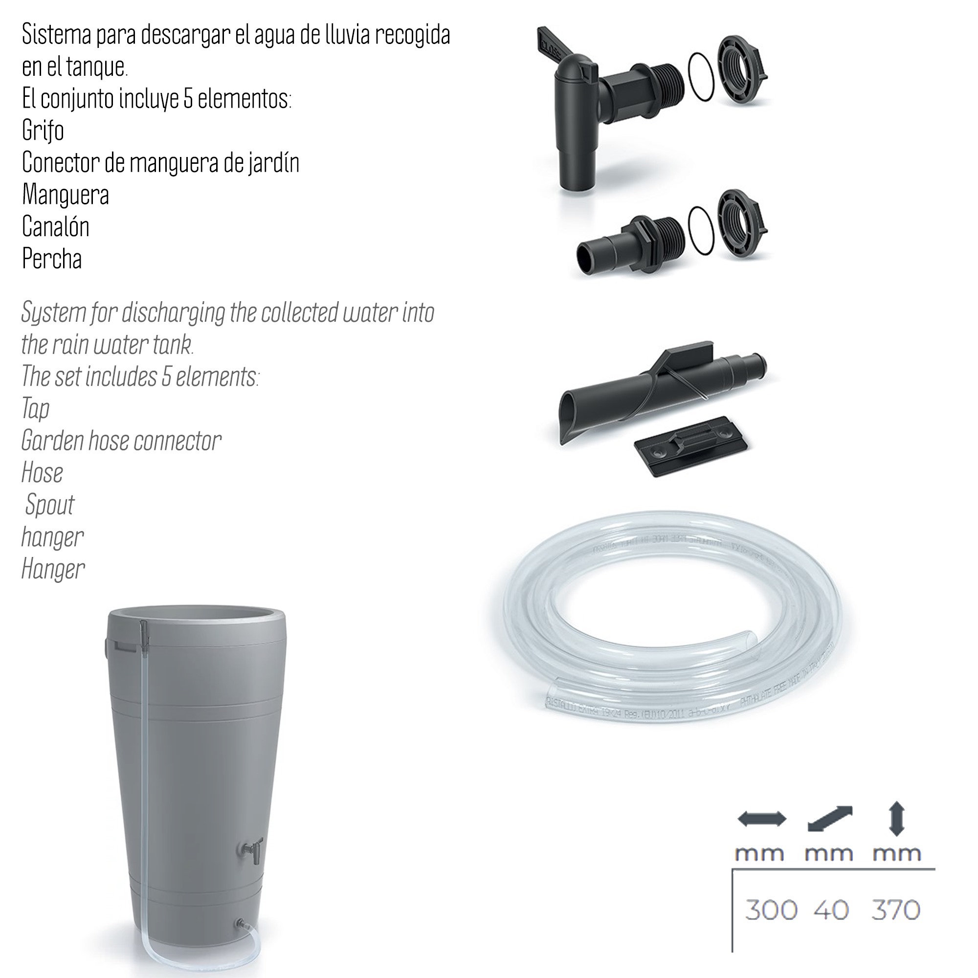 Set de accesorios para depósitos/barriles de agua de lluvia (5 piezas) ICANSET 5 , dimensiones (mm) 300x40x370