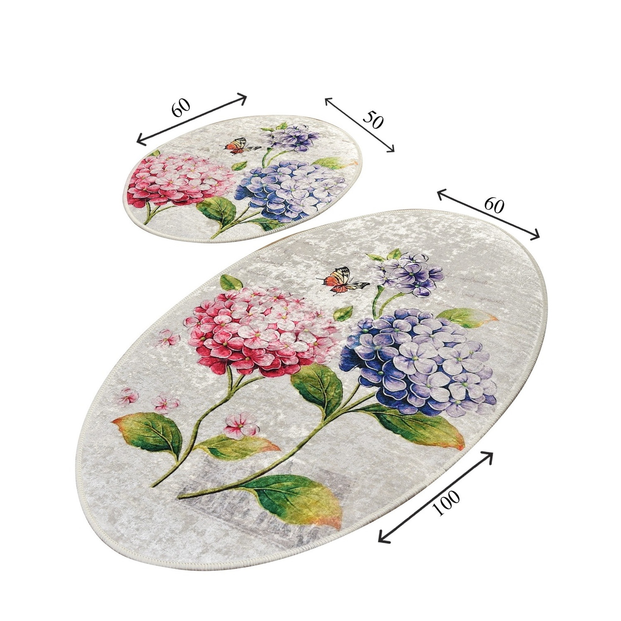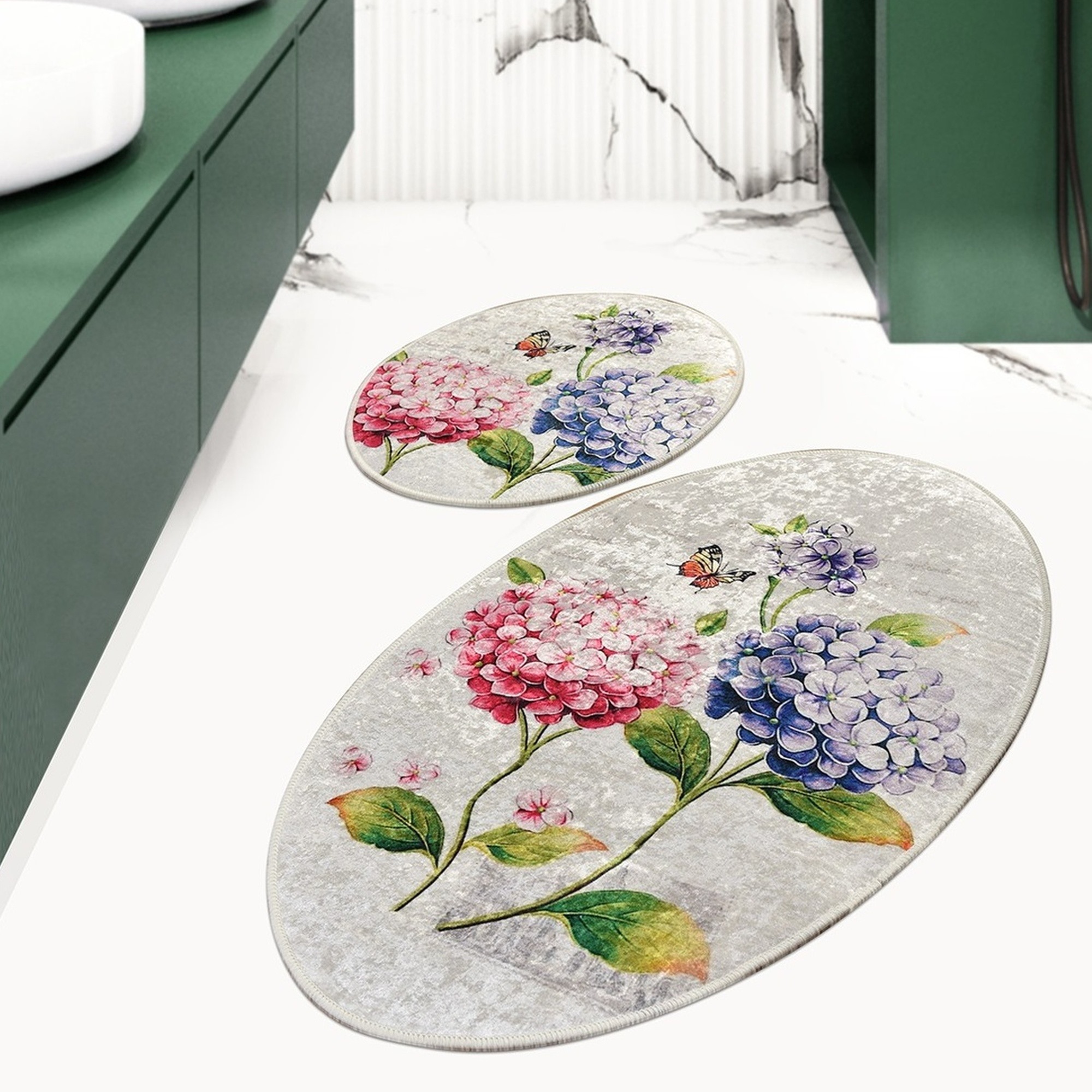 Set de alfombras de baño (2 piezas) flores rosa y lila