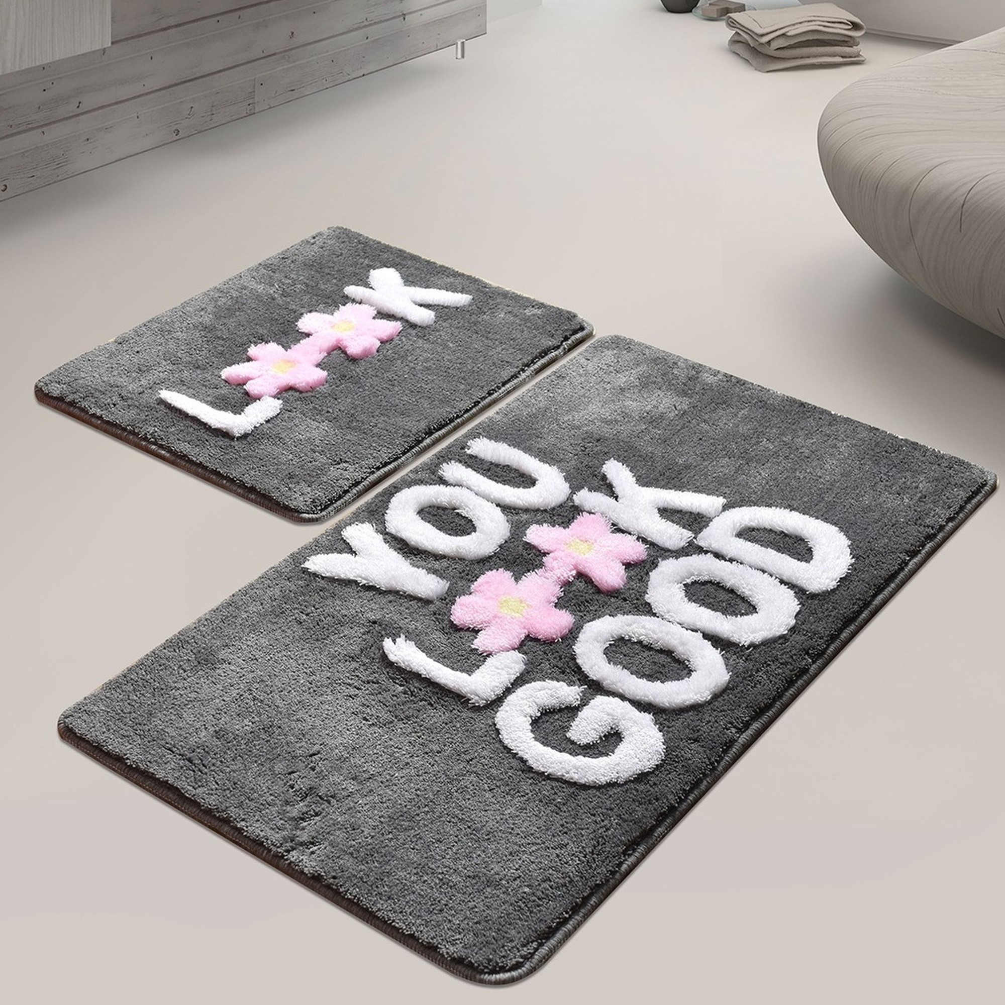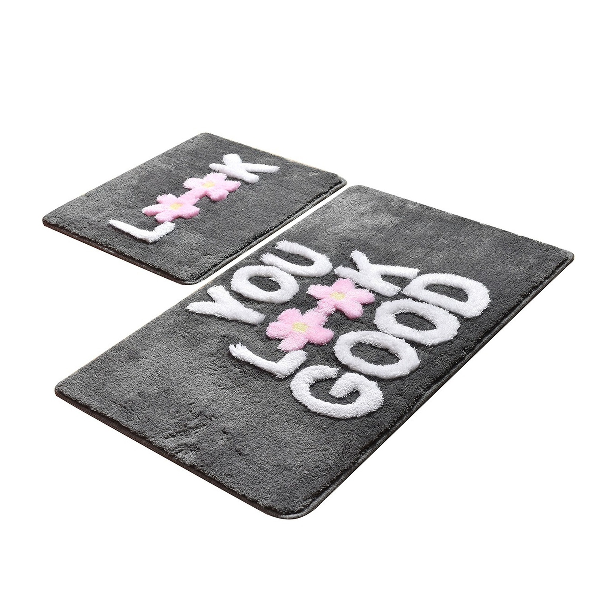 Set de alfombras de baño (2 piezas) you look great detalle rosa