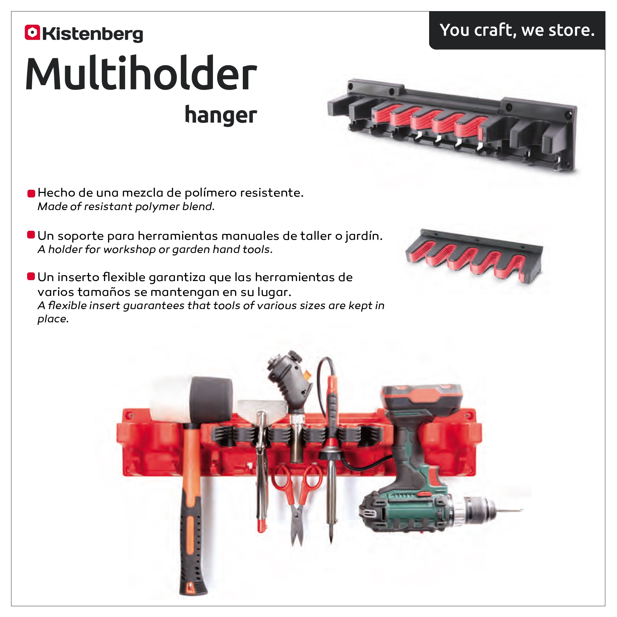 – Un inserto flexible garantiza que las herramientas de varios tamaños se mantengan en su lugar.