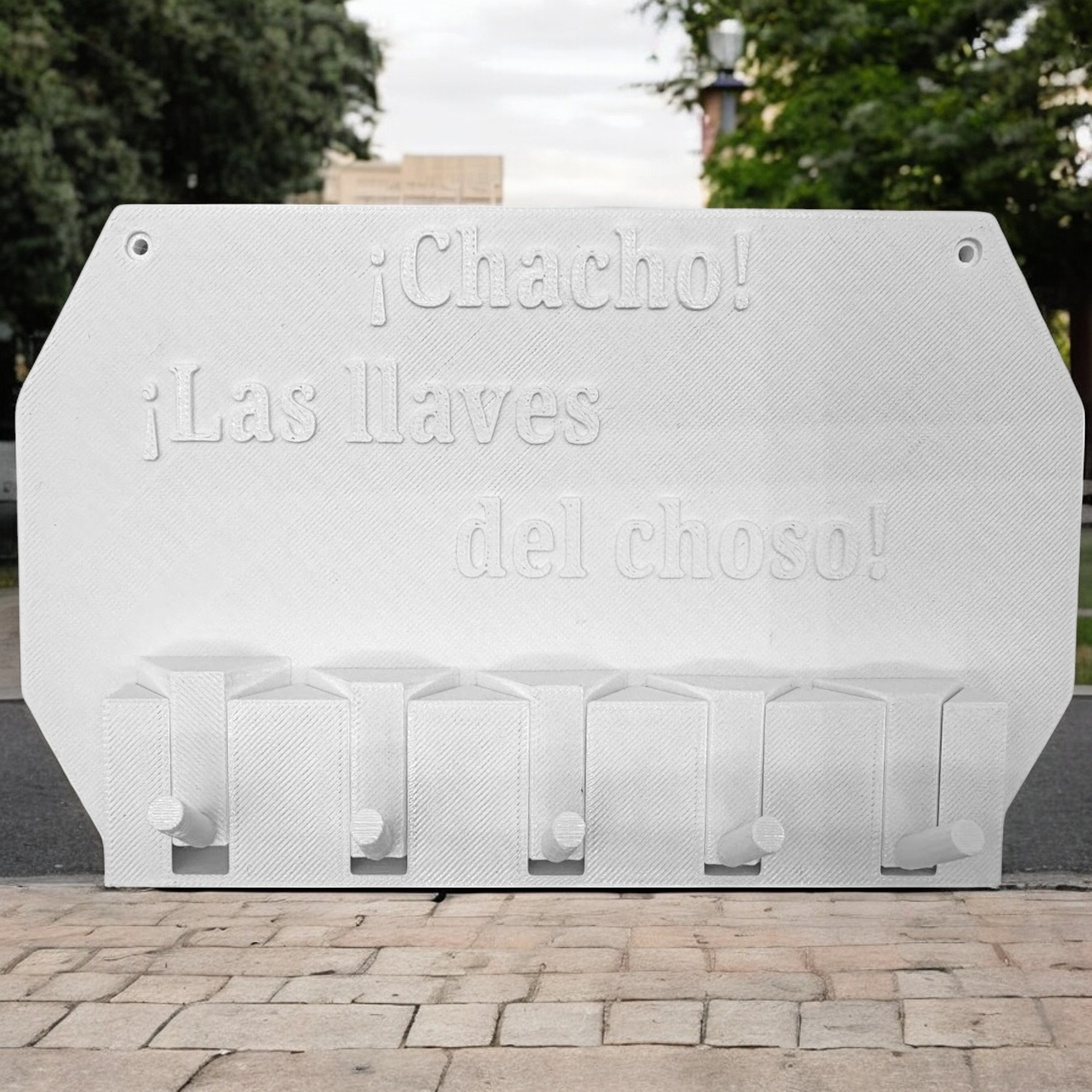 Con un diseño minimalista y moderno, es perfecto para organizar tus llaves de forma ordenada y decorativa, diseño «¡CHACHO! ¡LAS LLAVES DEL CHOSO!».