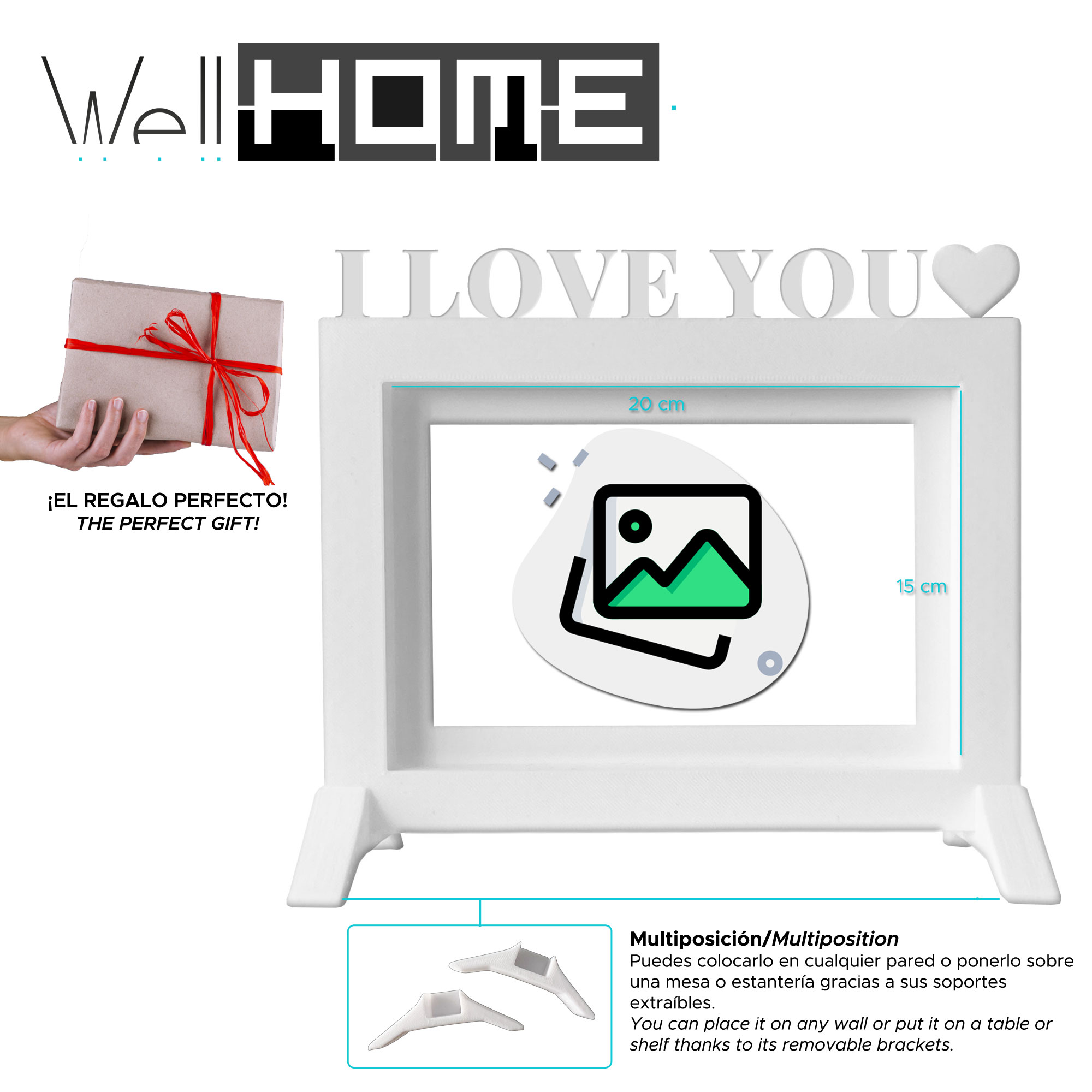 Well Home – Marco de Fotos de Mesa o Pared / Modelo »I love you» / Tamaño del marco 24×22,5×1,5cm para Fotos de 15×20 / Color Blanco